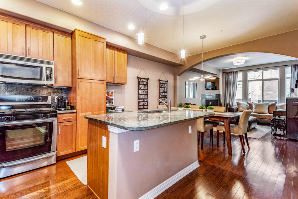 Step inside this urban-chic condo, and you’ll find an impeccably cared for home featuring mile-high ceilings, wood floors, and an open floor plan. The kitchen includes slab granite countertops, modern hardware, a center island, a computer desk area, and stainless steel appliances. You’ll also notice the gas stove, so even the most novice cook can become a master chef. There is also a full-size washer and dryer, which is a must in any condominium.
