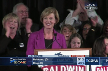 Congresswoman Tammy Baldwin seemed to be in an uphill battle – running for Wisconsin’s open Senate seat, she was the first lesbian major party nominee for U.S. Senate in a state where voters had banned same-sex marriage in 2006 by a 60-40 majority. She was running against popular former governor, Republican Tommy Thompson. Wisconsin has a slight Democratic lean, but that’s powered more by blue-collar union voters than social liberals.