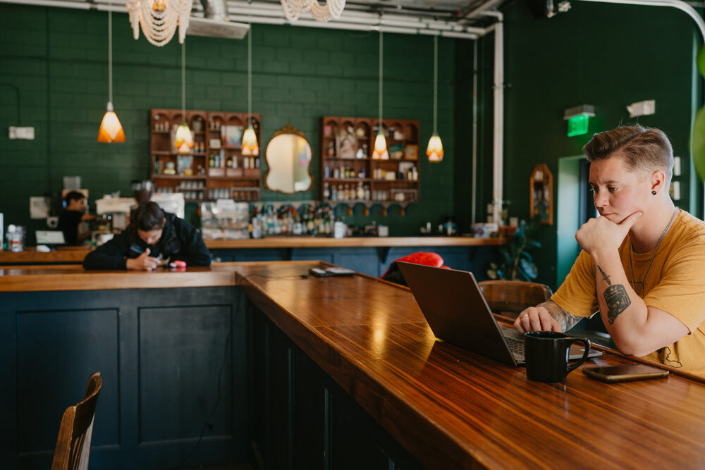 An accumulation of life experience and love for the service industry. I was a bartender for 12 years before I got in my accident and my eyes were opened to exactly how minimal standards are for accessibility and inclusion. I was trying to go to my favorite places to eat and drink and sometimes couldn’t get in the door or the bathroom. Being a trans man adds to that in a different way. Additionally, watching covid eat away at small businesses and accessibility really pushed my motivation as well. When it rains, it pours – and a storm was brewing. I had no choice but to see life differently, and without it Accessibly Yours would not exist. I’m thankful for all of it.
