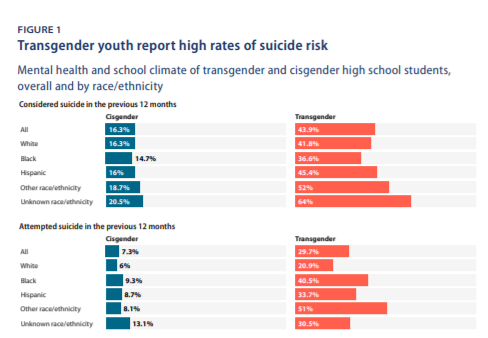 The study found that trans youth are at higher risks of suicide, depression, anxiety, and bullying than their cis counterparts. The CAP report found that lack of access to a community willing to affirm their gender identity by using their correct names, and pronouns have been specifically tied to increased suicide rates.