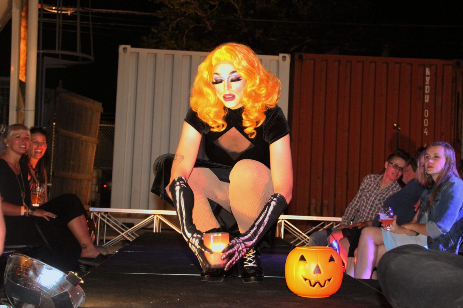 The host also helps to pick queens who will perform on a makeshift stage that has been set up in the brewing area,which can be seen through two double, glass doors just to the right of the bar. This past summer, though, a raised platform stage for the drag show was set up in the outdoor patio space which was added to Ratio this past year.