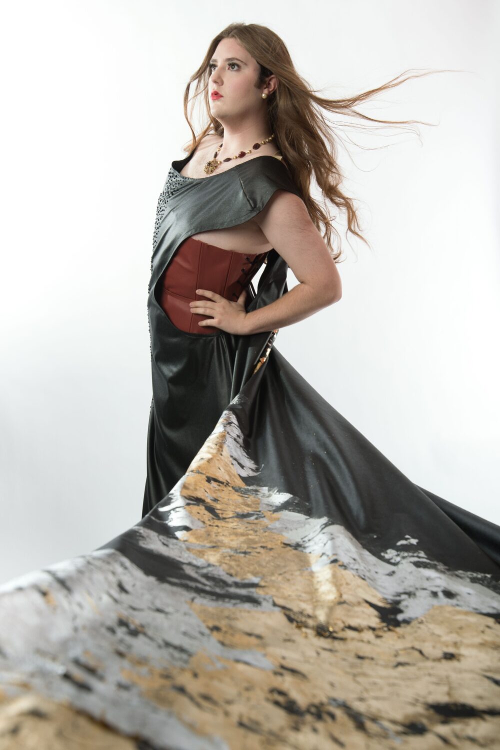 “I was assigned a model and she was so cool…and she’s transgender. I didn’t really realize it at first. As I was fitting her I noticed her body shape was not what I was used to. And I actually became friends with her and her wife, who is also trans fem, and they taught me so much about the difficulties of fitting for trans people who have transitioned after puberty. And I just fell in love with them, and when I made that first dress for her, her face completely changed. And I was like, this is my calling; this is where I want to work.”