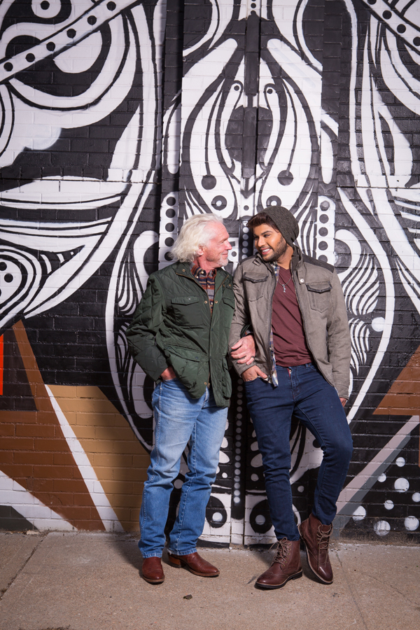 His husband, 63 year old George Powell, is a fit, youthful, Richard Branson-type who’d look perfectly natural on a surfboard or striding up The Incline, as he does so often. His hair is silver, full. He can’t help but look protectively at Lawrence, and lean toward him as the stories get dark, as though to remind him silently that those days of chaos and torment are behind him. As they recall the quagmire of getting Lawrence onto American soil, their hands slide toward one another atop the table, breaking softly at intervals only to rejoin minutes later, subconsciously magnetized as two people in love tend to be.