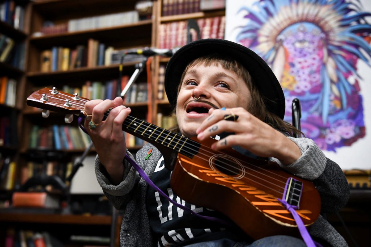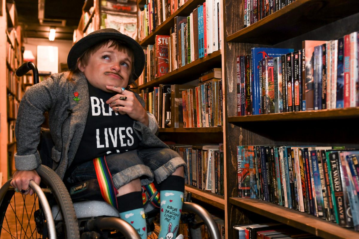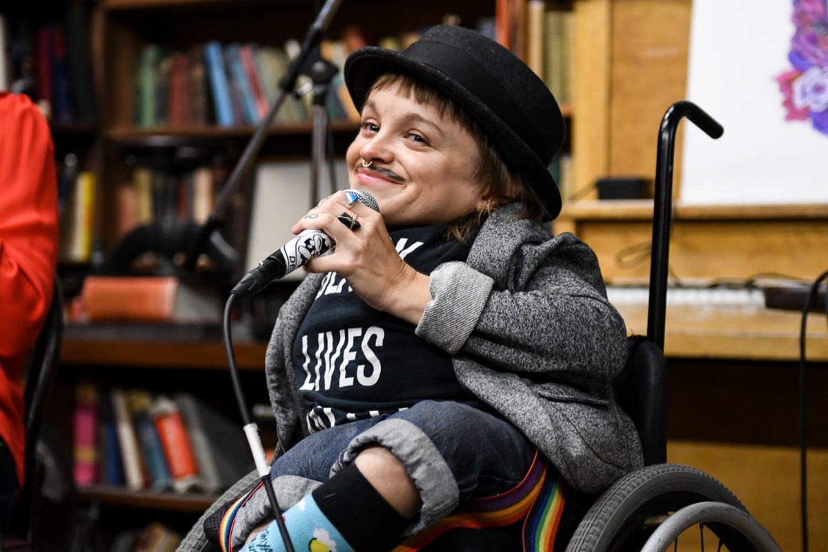 Kalyn Heffernan may be small, but she is quite mighty. A Denver local and queer activist, she is the founder and MC of the band Wheelchair Sports Camp. Along with Gregg Ziemba on drums and Joshua Trinidad on trumpet, the group combines humor, playfulness, radical political perspectives, compassion, and undeniable musical chops into their performances.