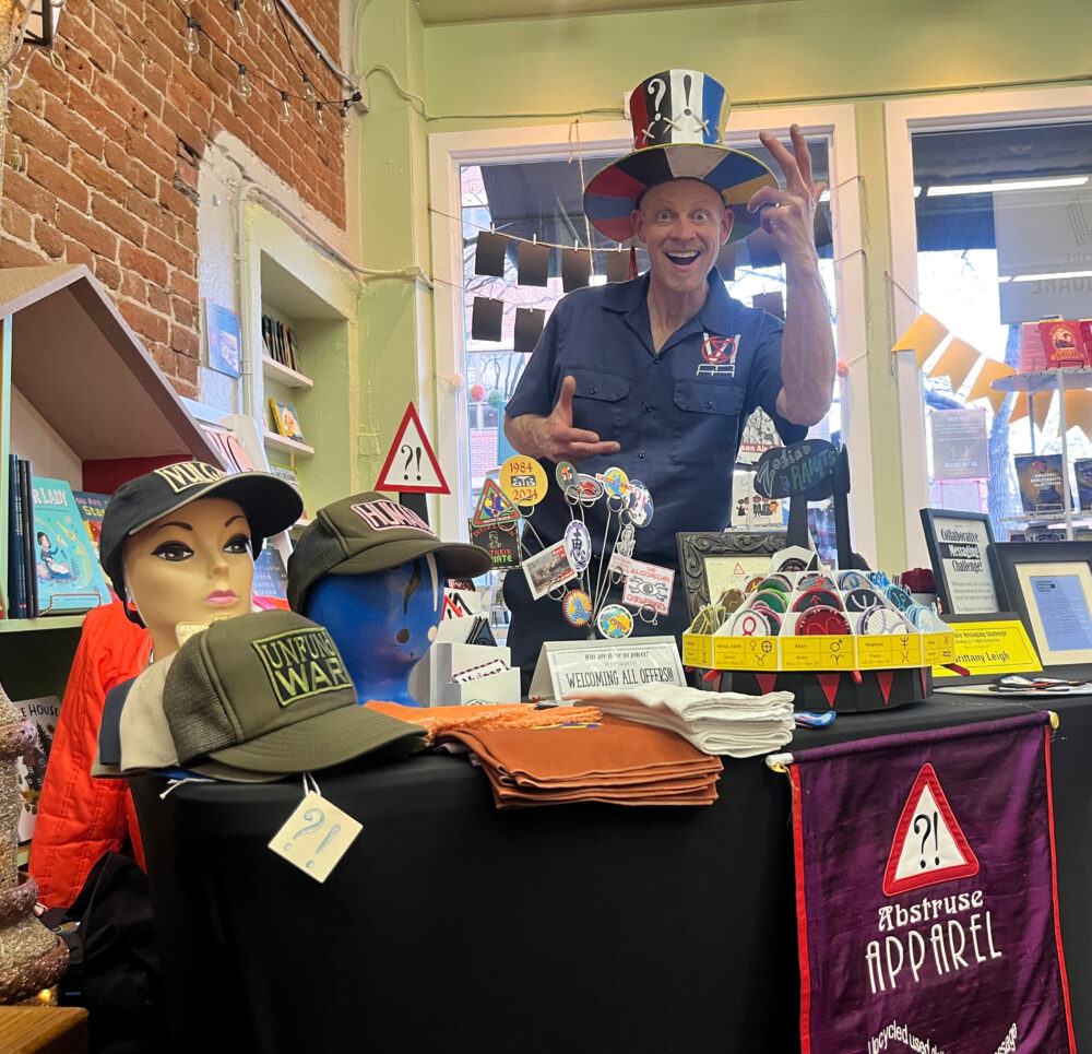 Rob Alexander’s enjoyably curious style and apparel drew in folks like honey—and his company Abstruse Apparel makes all their products from recycled and reused clothing. You can find his “upcycled clothing with a message” at The Lyric and Functional: A Space for Radical Reuse in Fort Collins.