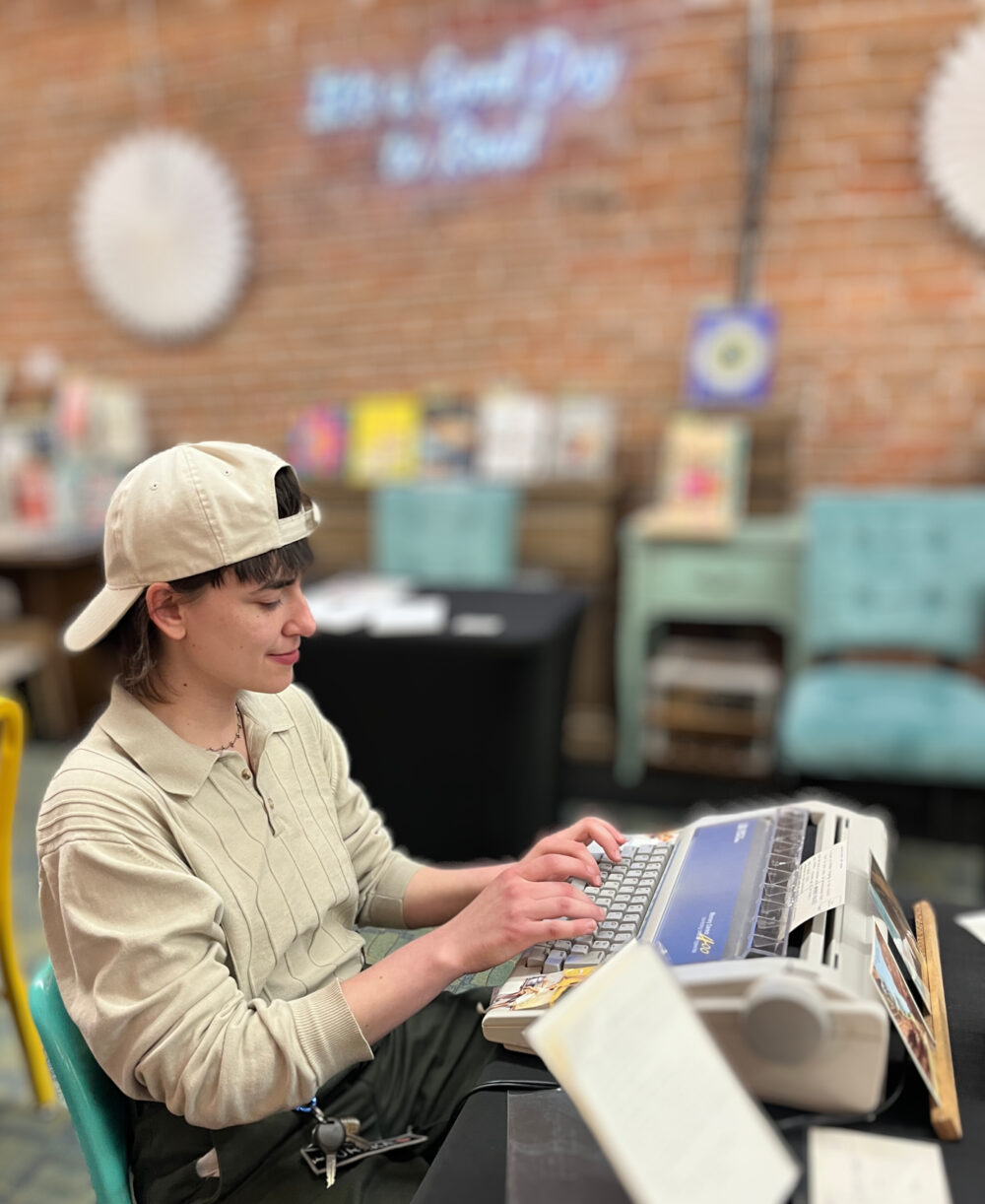 Vic Leal also had a chance to chat with OFM and share poetry in the form of performance art. Vic’s unique approach uses their typewriter and postcards to create poems for guests who want personal poems made just for them on the spot. The engaging process is a unique experience that you won’t want to miss if you run into them at a vendor’s market. You can check out more of their work on their Instagram.