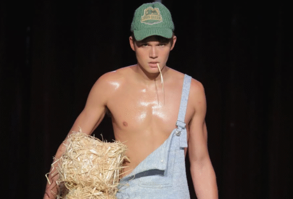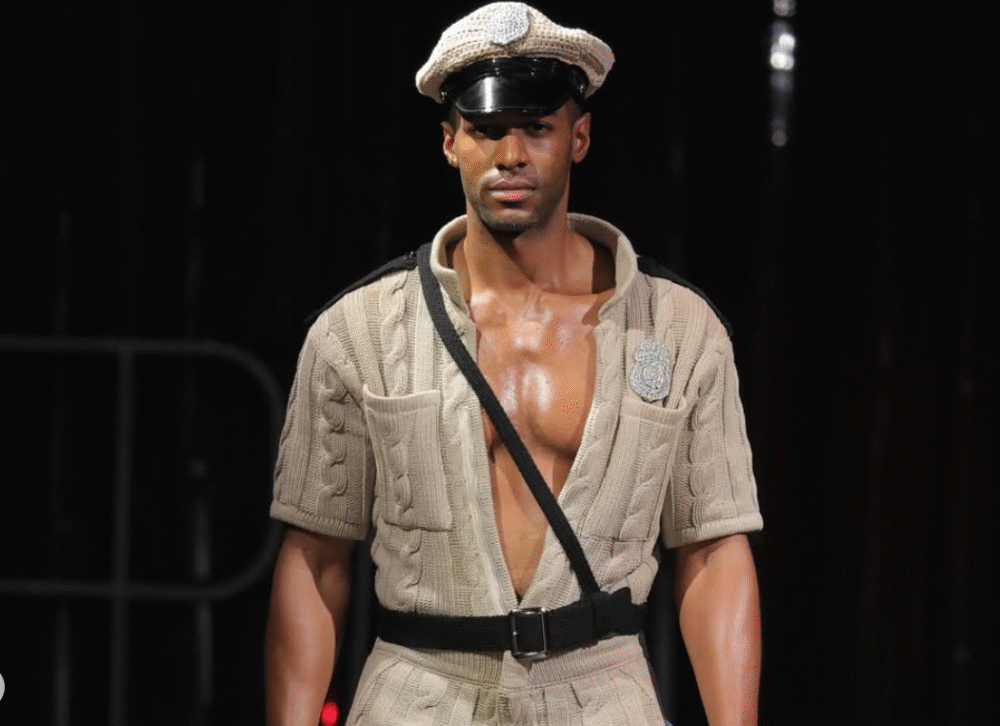 The Rainbow Wool collection was showcased at The Altman Building, in New York. “Gay archetypes, from firefighters’ suspenders to sailors’ crops, were refigured in wool,” according to Pink News.