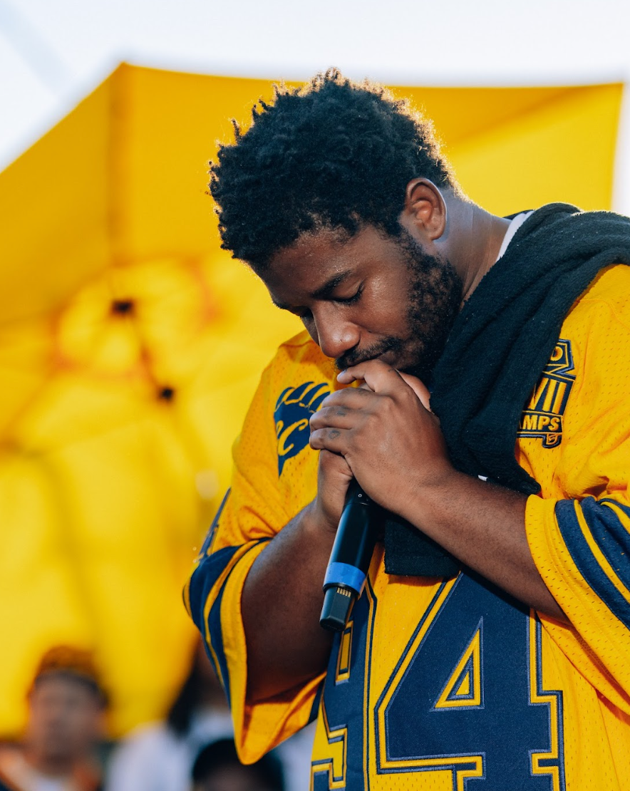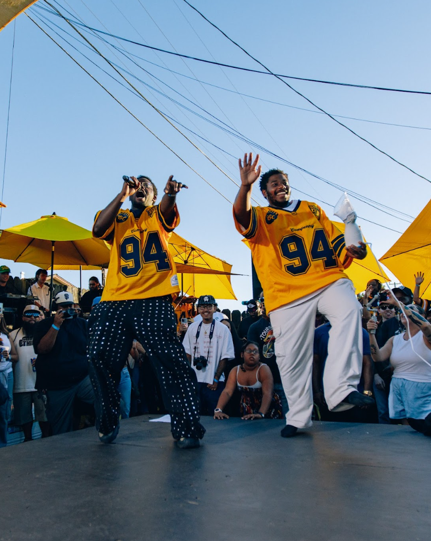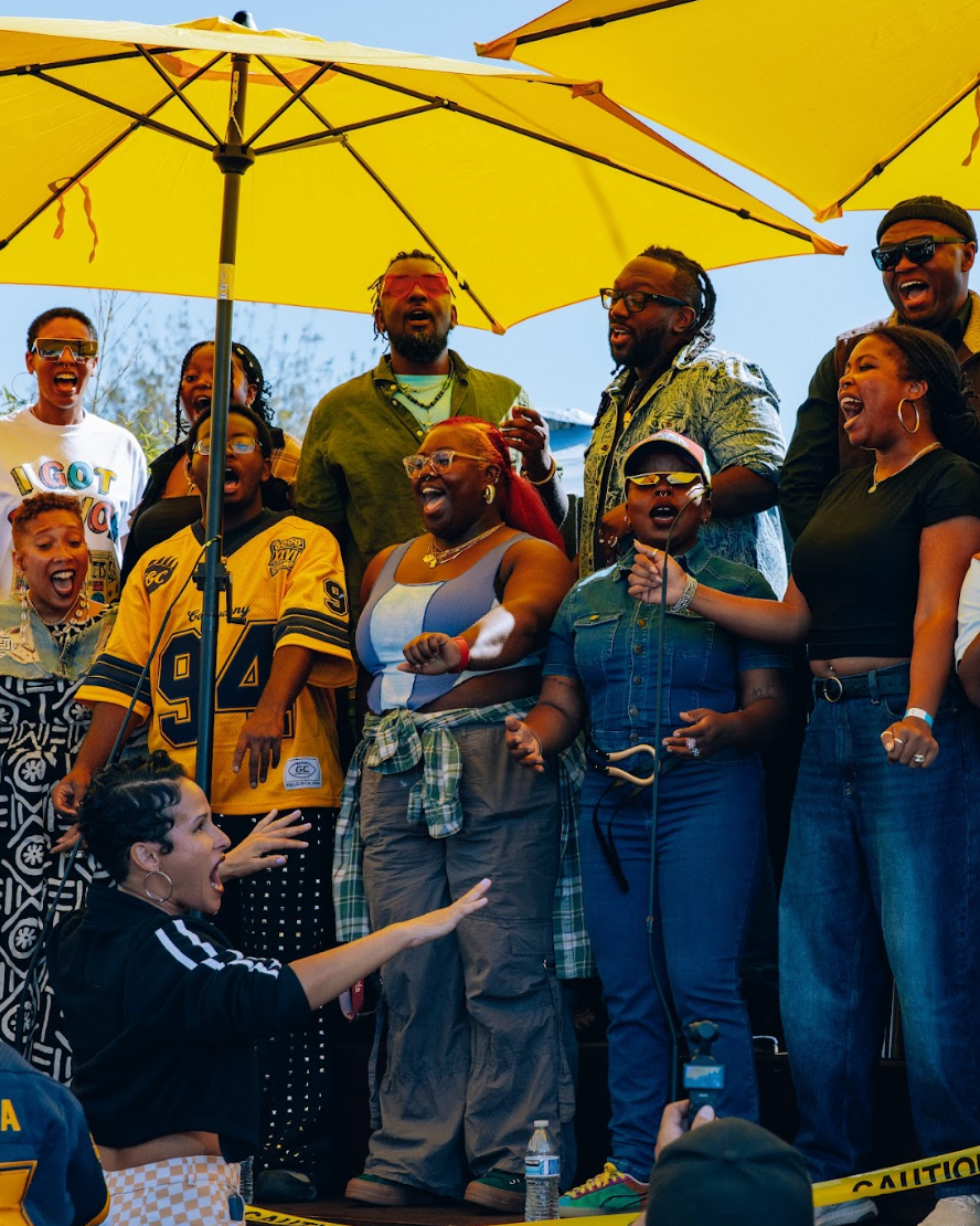 When I got back for the second set, LaRussell had changed into a yellow jersey. The sun was still strong. The set list hadn’t shifted much, but they started with the collaboration with Montell Jordan. The choir opened with “This Is How We Do It,” and it hit. It set the tone.