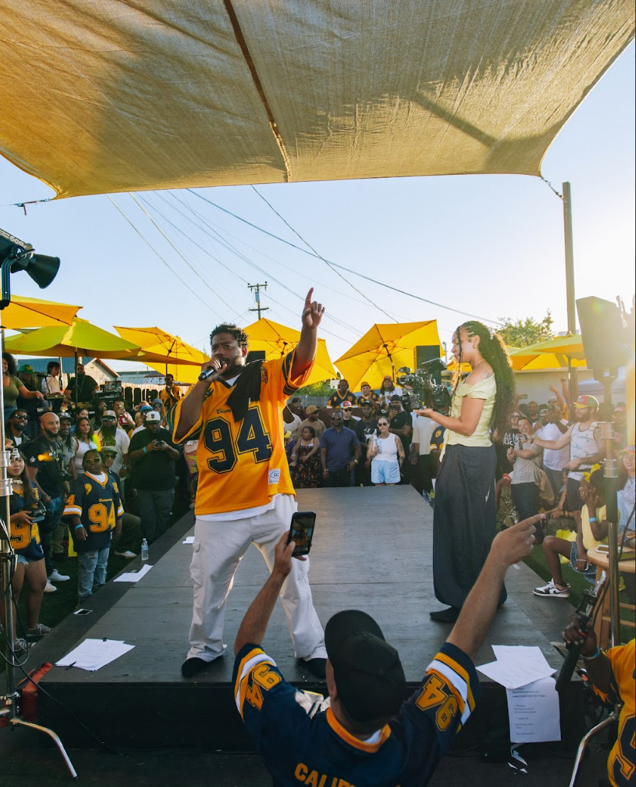 The only downside to such a stacked day was that midway through the second performance, LaRussell’s voice began to give out. He played it off well. A member of Collab Choir stepped in with a sharp, electrifying rap. He opened with one of his own songs, came back more than once, and kept the energy moving. A high school friend joined to sing a few verses. She sang “Everything’s Gonna Get Better,” the track she originally recorded. Her voice carried through the yard like something sturdy and clear. His manager, Tietta, stepped up with a few words too. Spoken word. A short poem. Motivation through the static.