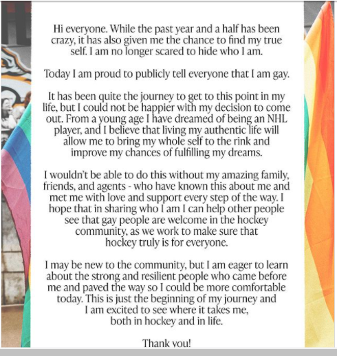 Prokop has received a lot of support from his teammates and the NHL after coming out. Even his Instagram grew in support.
