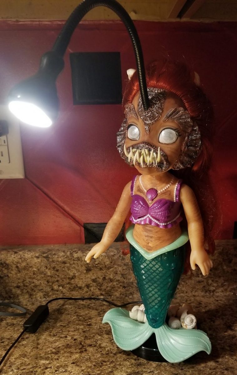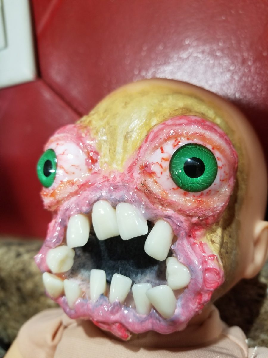 Removing her braces in 2017 was the catalyst. Instead of a cake or gift, Melanie requested a copy of her original teeth, which ended up in the face of the doll at the kitchen table. She initially set out to create props for a haunted house, but Melanie kept the ball rolling, though she didn’t fully know what she was doing.
