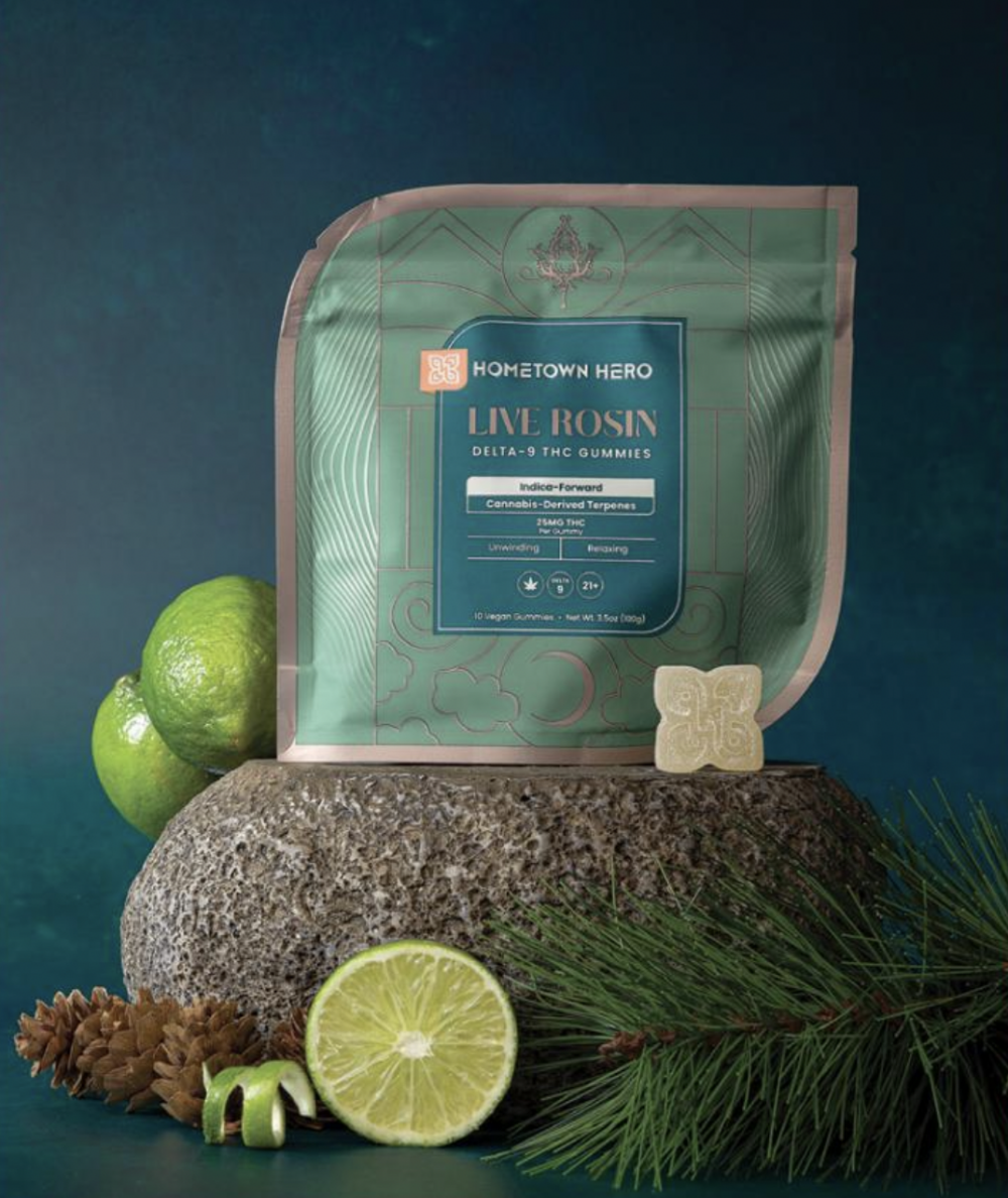 Natural-flavored, handcrafted gummies with 25mg Delta-9 THC and 5mg of live rosin infused in every piece for an elevated experience. Hometown Hero’s live rosin is pressed directly from hemp without solvents to deliver the plant’s “living” profile, increasing effects when paired with Delta-9 THC from hemp.