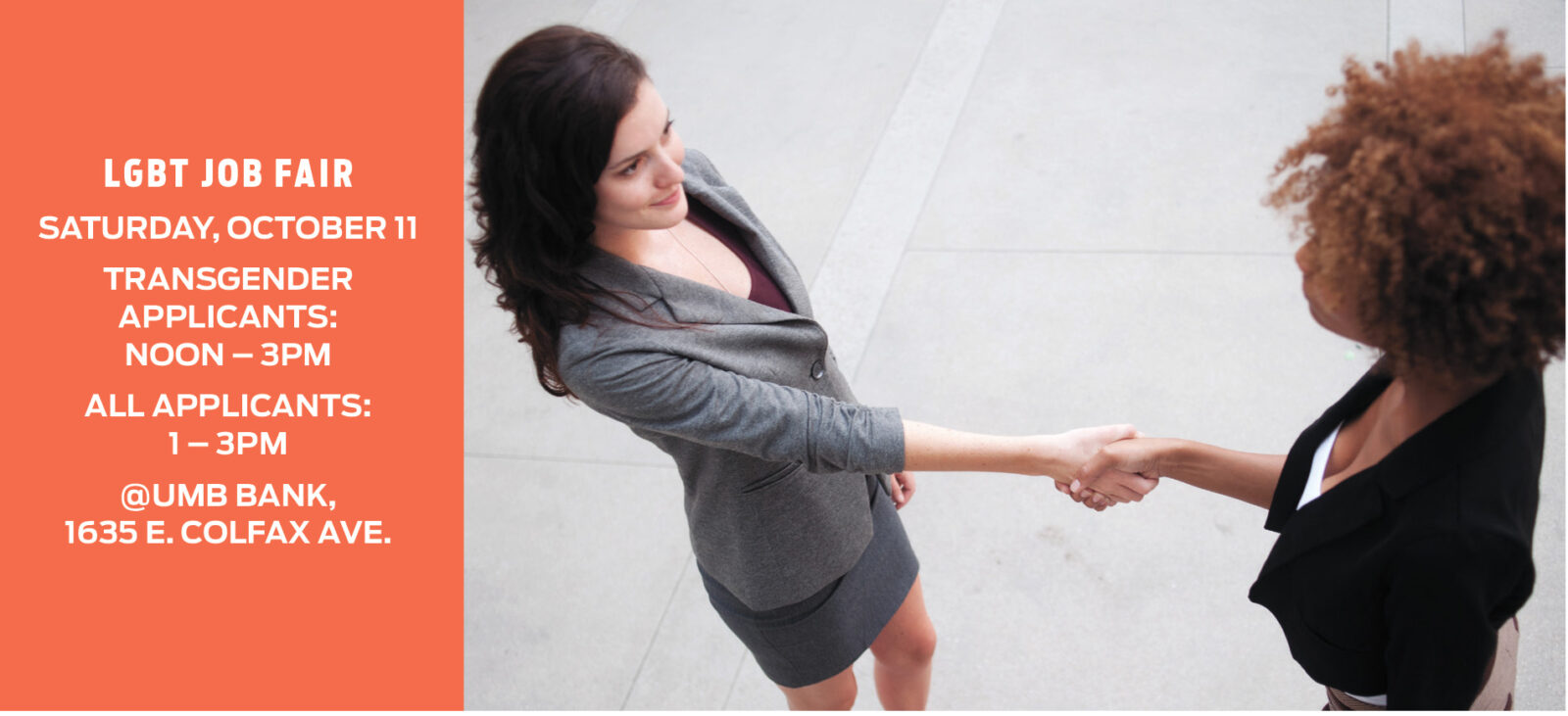 The LGBT Job Fair will take place at UMB Bank at 1635 E. Colfax Ave. Free parking is available behind the bank.