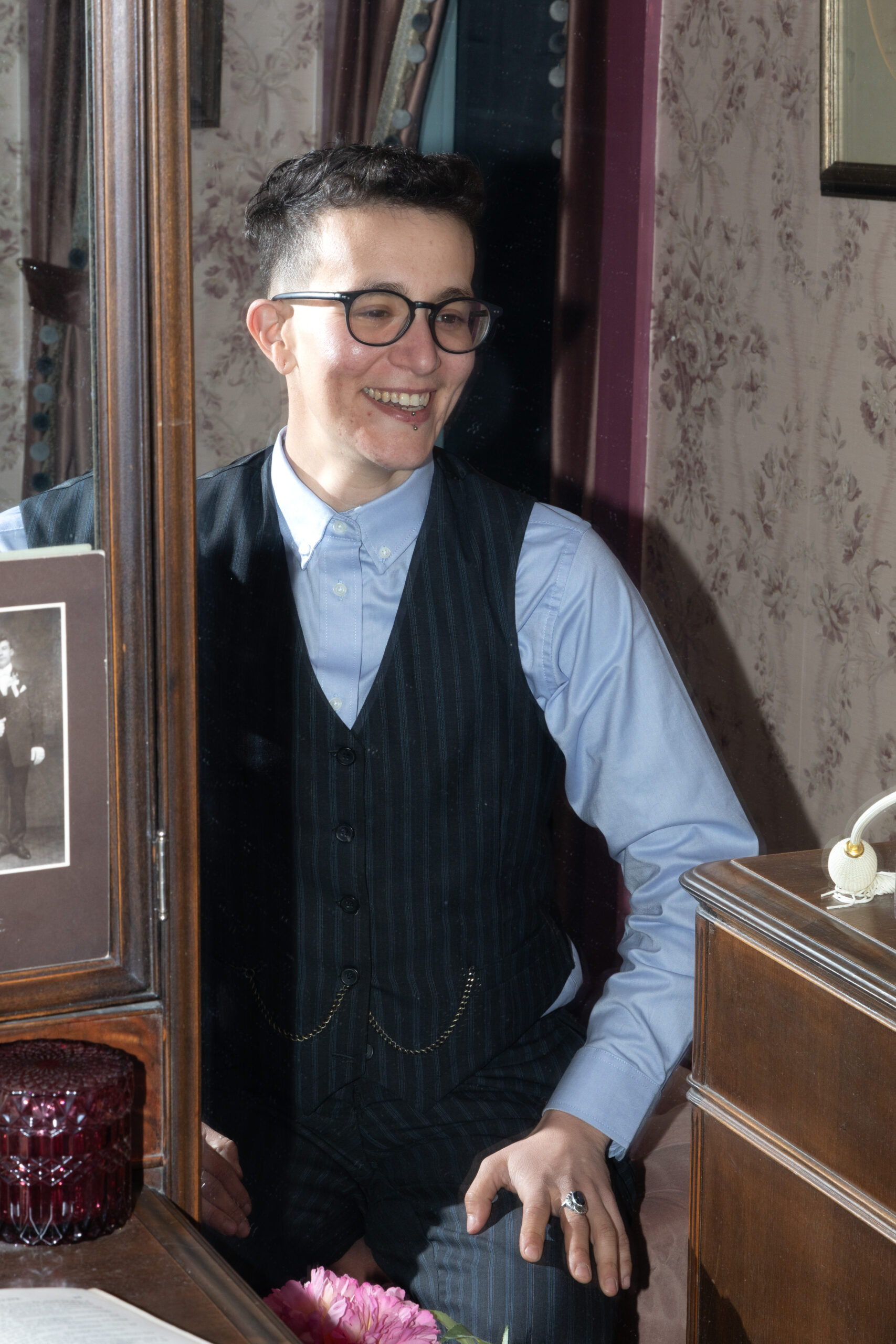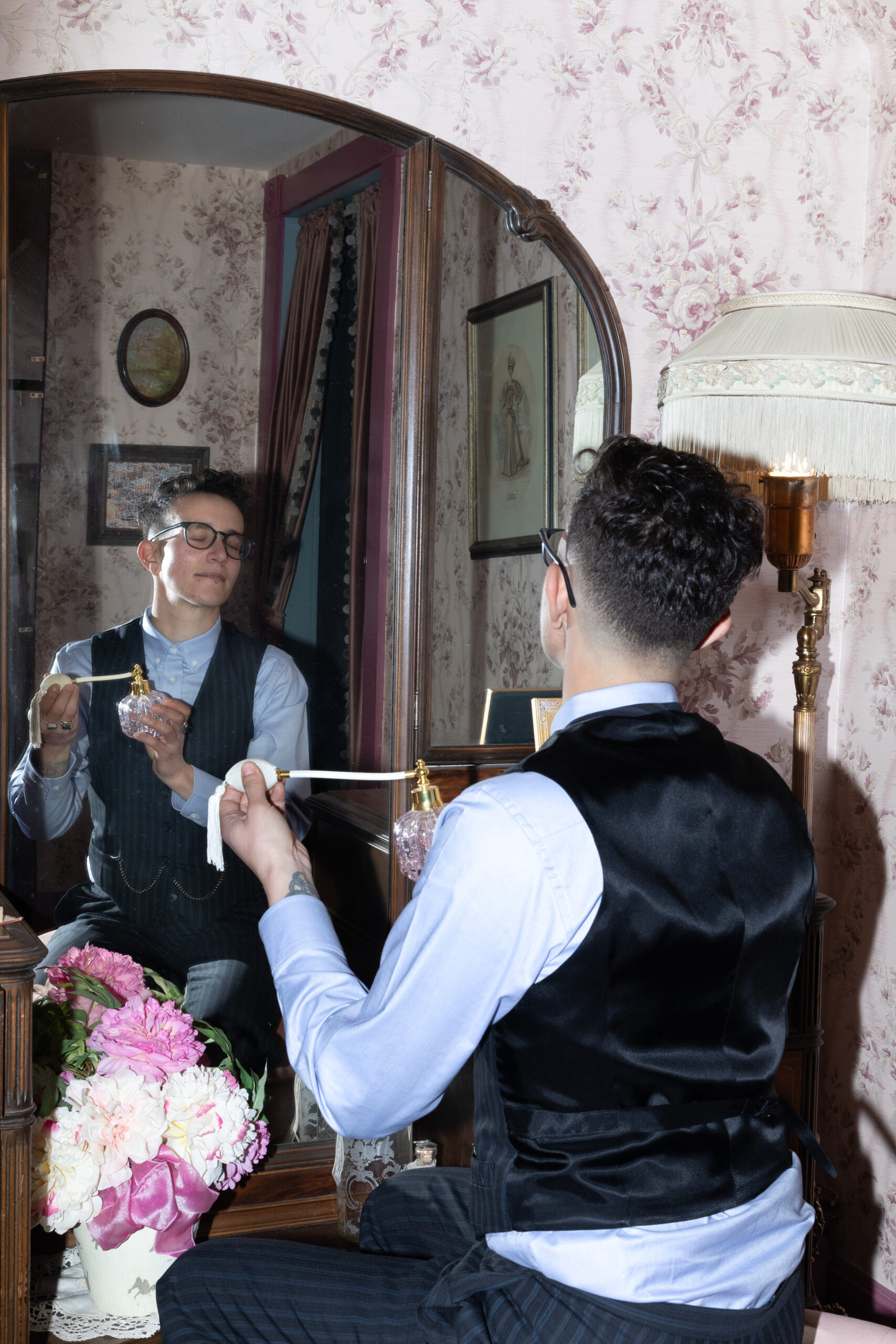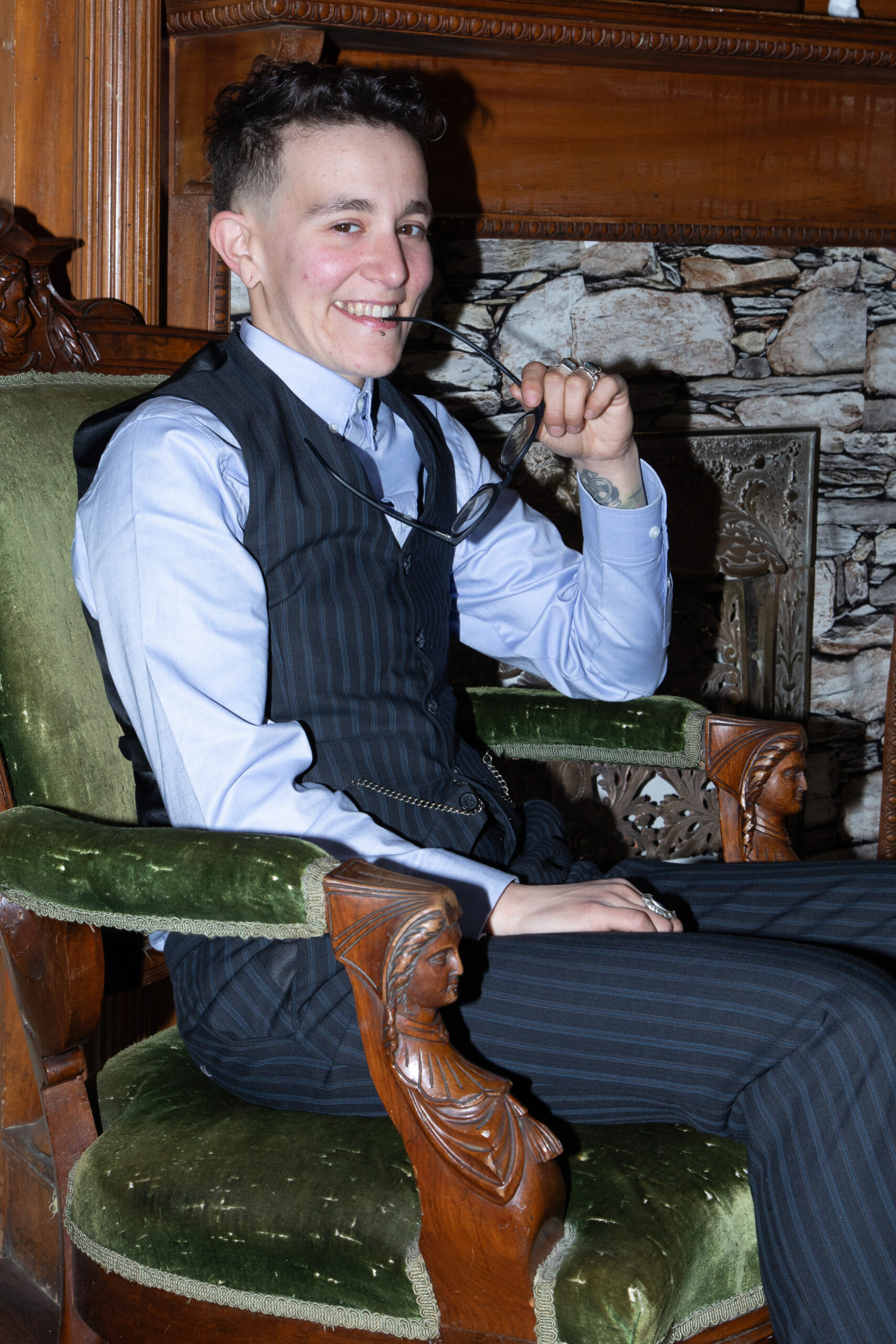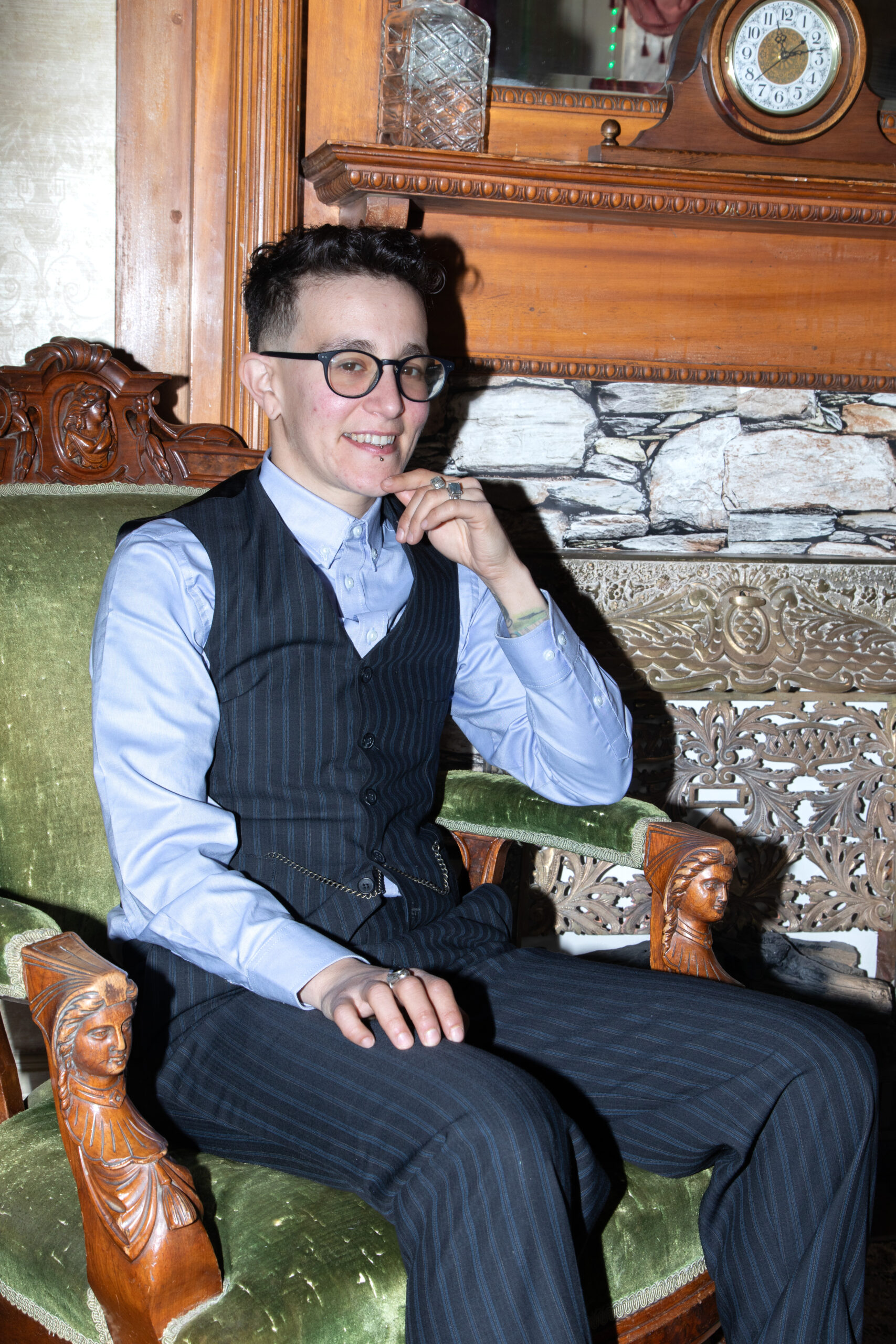 OFM’s March issue is all about the queer meaning of home and curating a safe space that feels like your own. Our Home Sweet Homo photoshoot was shot at the Creswell Mansion, and featured a design from Julianna’s Wardrobe, owned by Julianna Aberle-McClellan, a queer inclusive designer who specializes in vintage wedding gown redesign and costume design.
