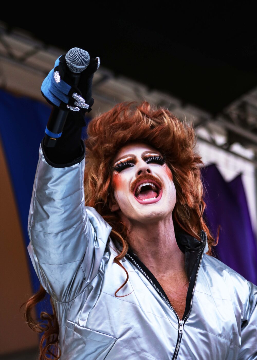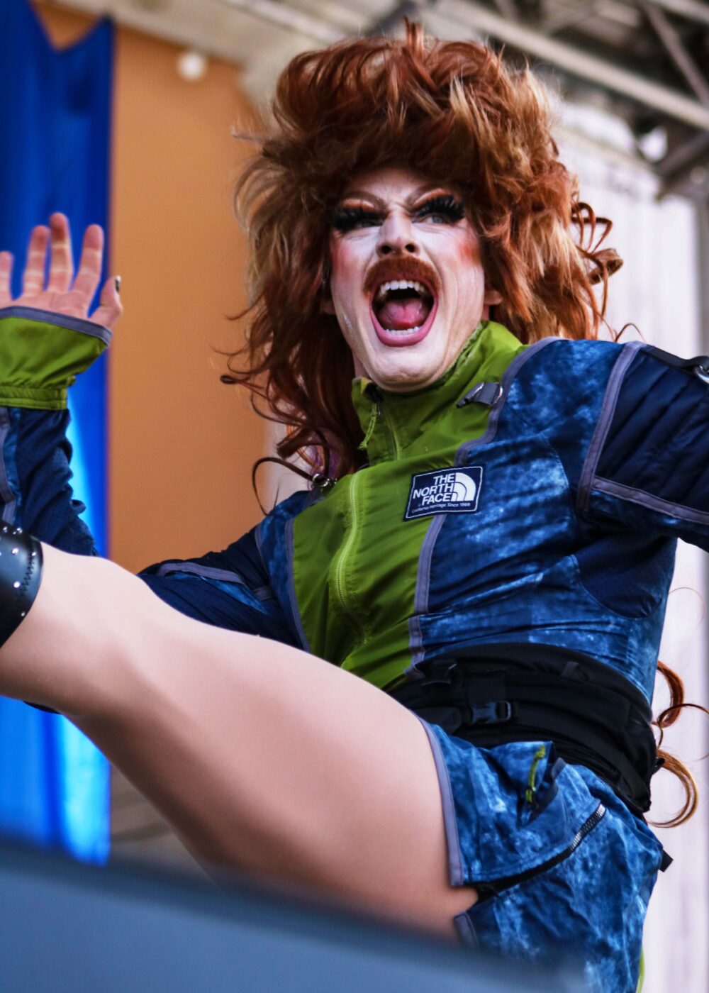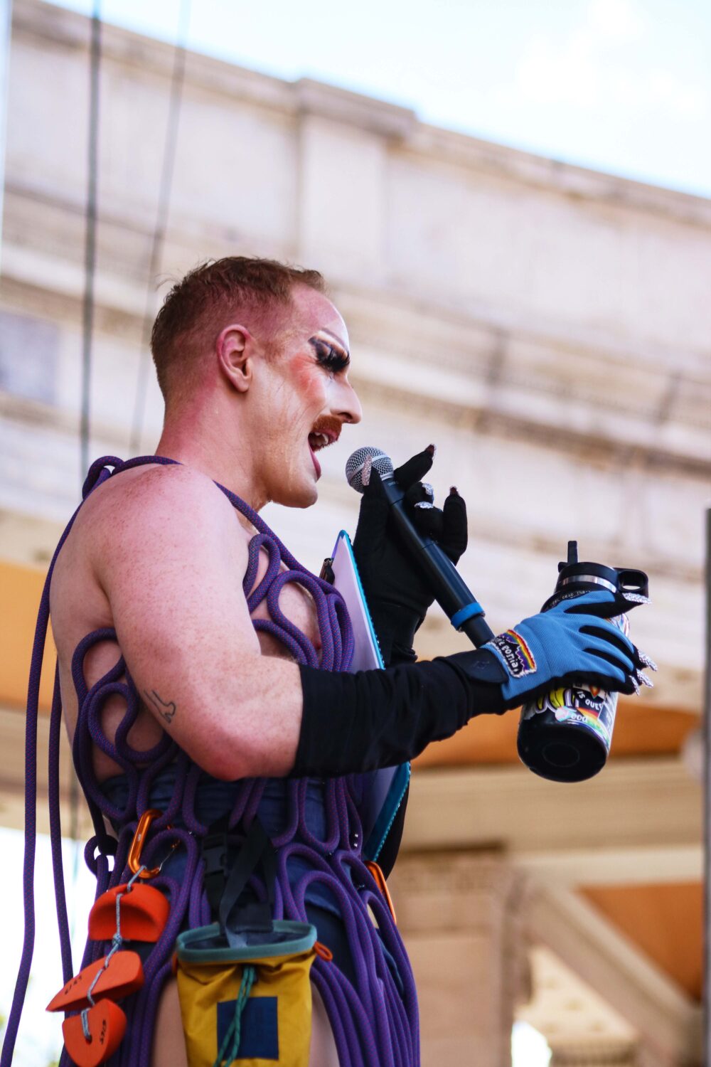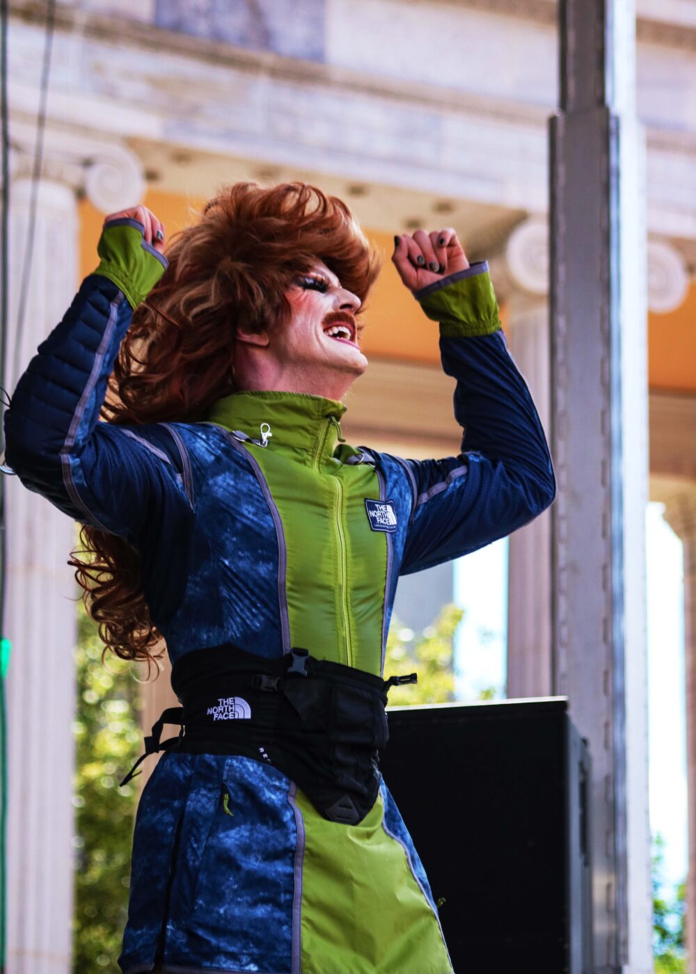 Pattie Gonia had everyone screaming “Mommy” at Denver PrideFest this year. As a headliner, Pattie collaborated with their drag husband, Vera to slay the house down. While putting on a show-stopping performance sporting a luscious bisexual mullet and stunning outfits, Pattie also spoke out about freeing Palestine, equality, protecting nature, and staying hydrated in the scorching Pride heat. Learn more about Pattie Gonia here, or check out their Instagram here!