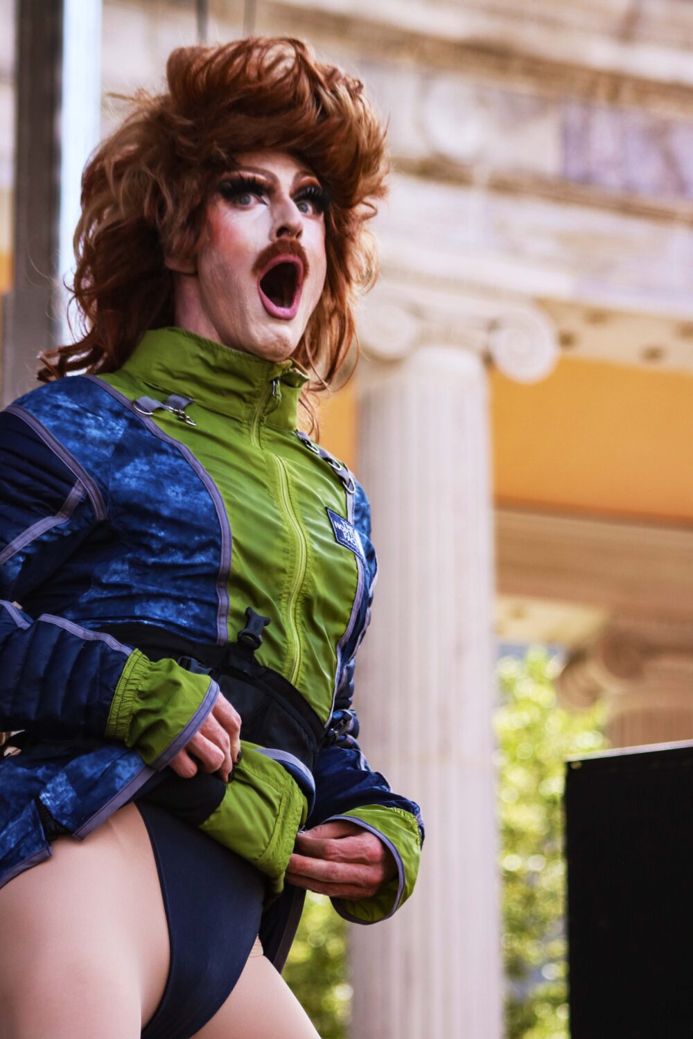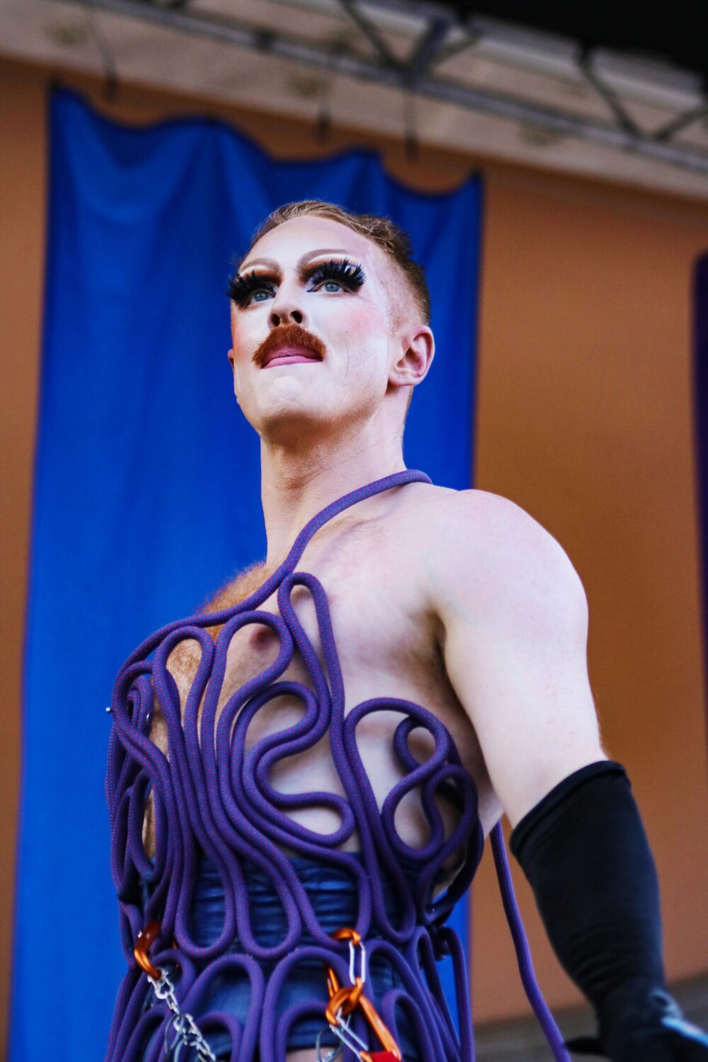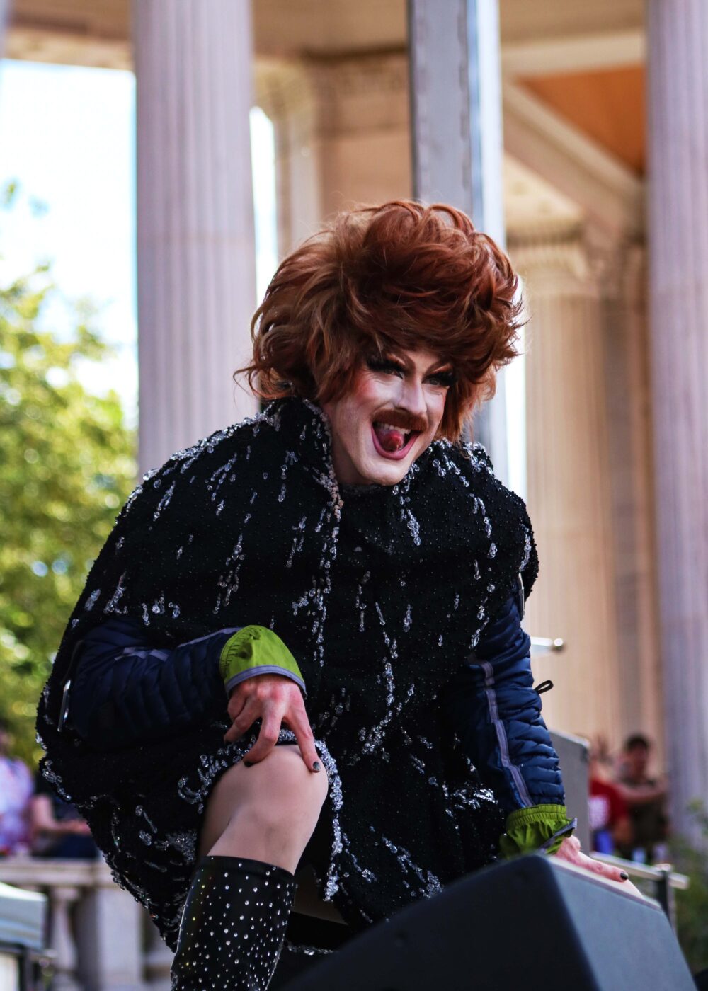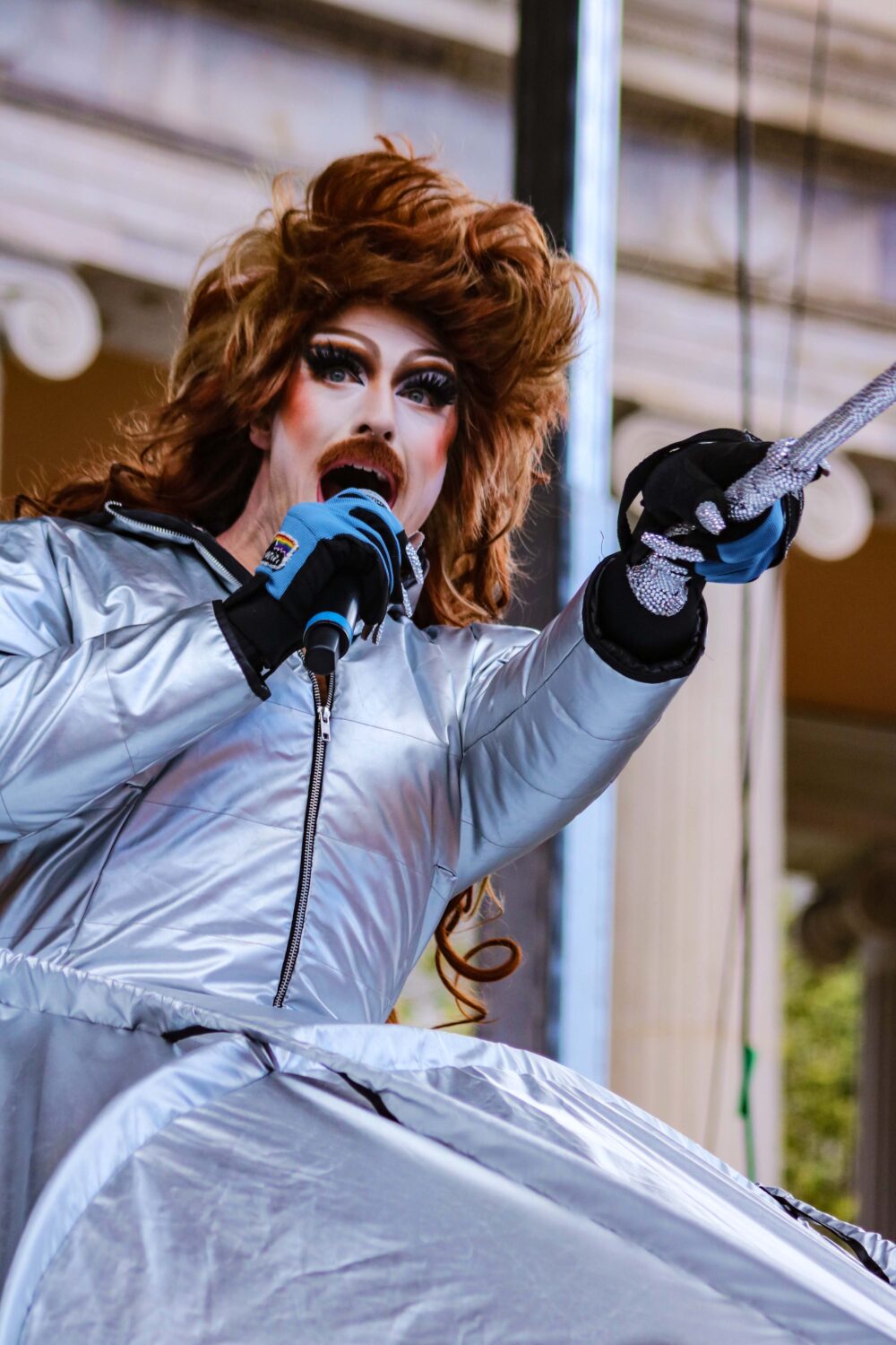 Pattie Gonia had everyone screaming “Mommy” at Denver PrideFest this year. As a headliner, Pattie collaborated with their drag husband, Vera to slay the house down. While putting on a show-stopping performance sporting a luscious bisexual mullet and stunning outfits, Pattie also spoke out about freeing Palestine, equality, protecting nature, and staying hydrated in the scorching Pride heat. Learn more about Pattie Gonia here, or check out their Instagram here!