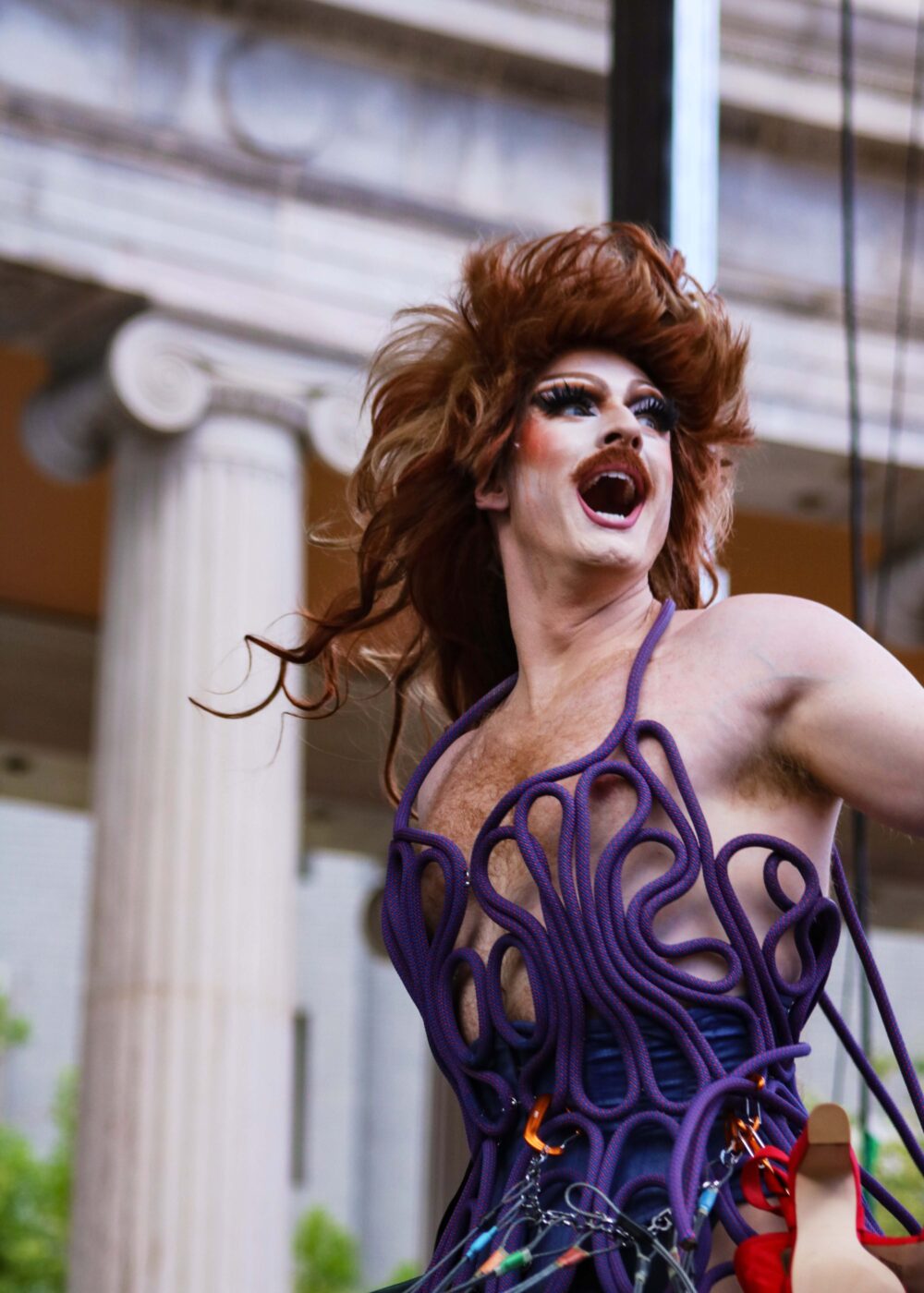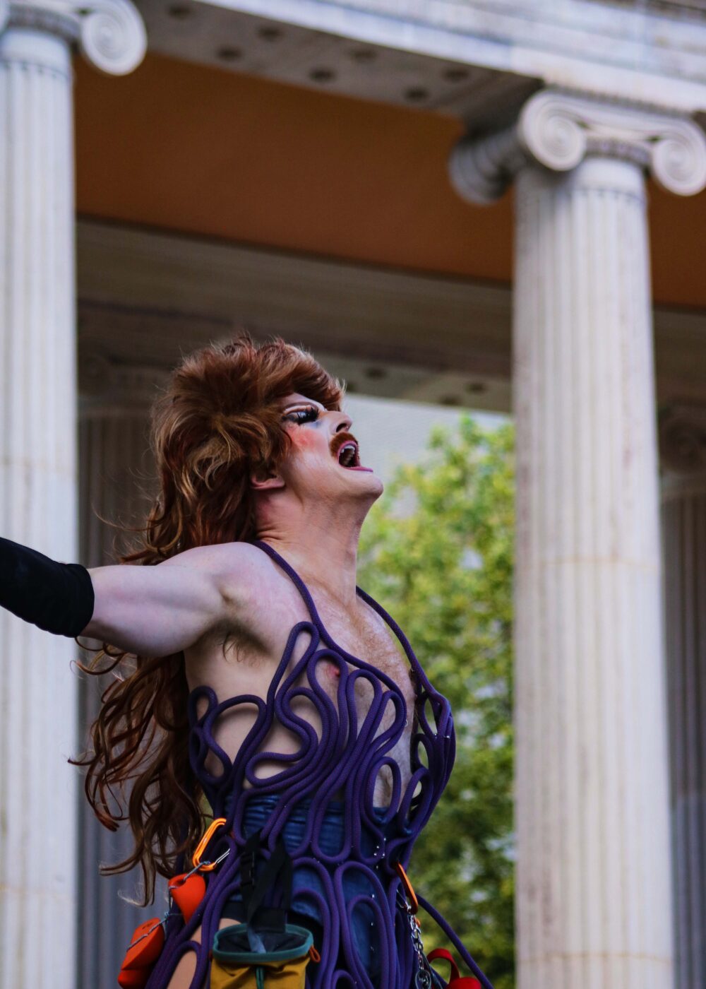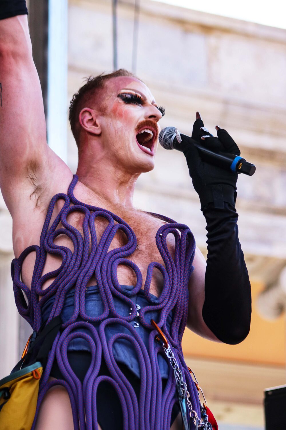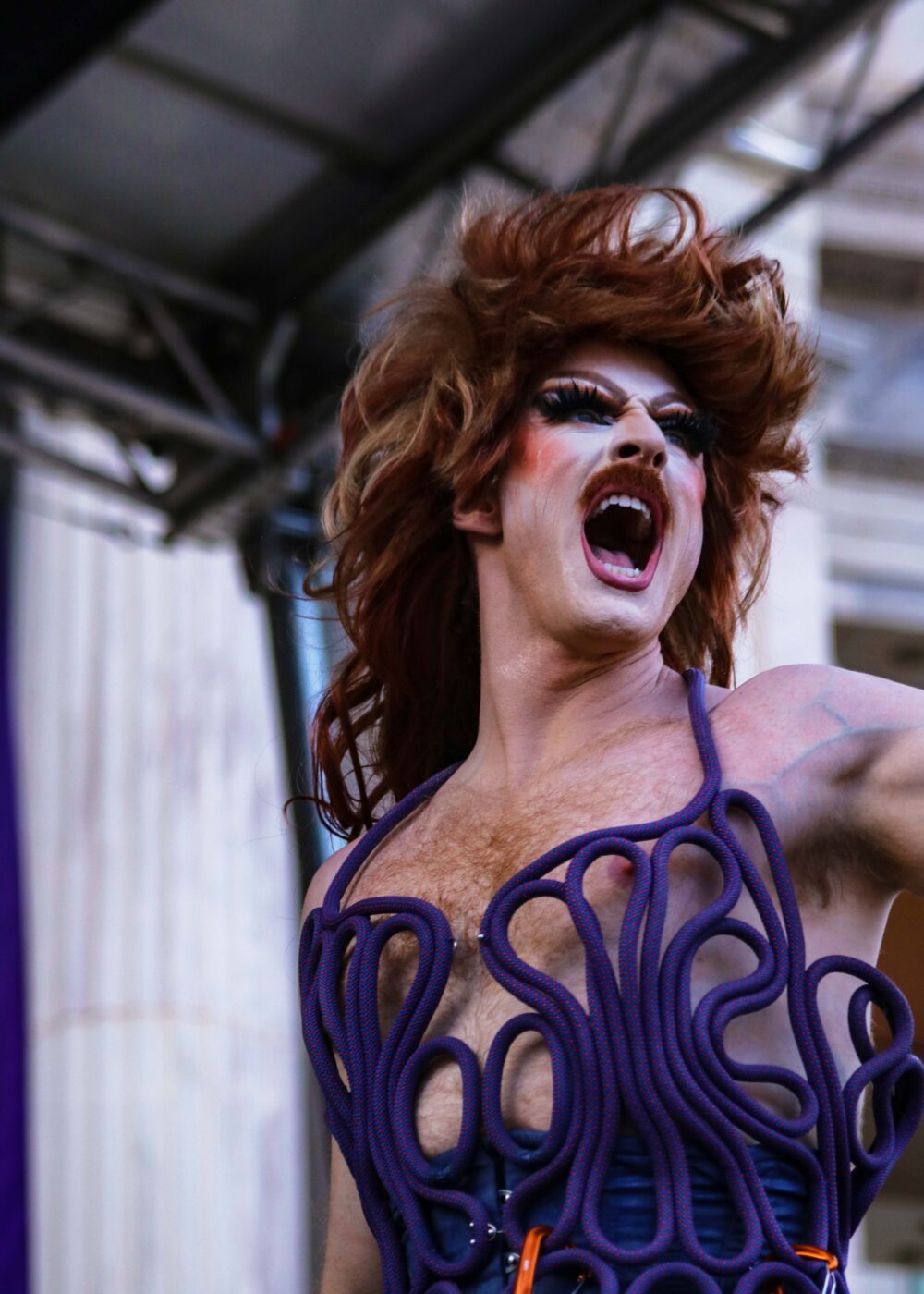 Pattie Gonia had everyone screaming “Mommy” at Denver PrideFest this year. As a headliner, Pattie collaborated with their drag husband, Vera to slay the house down. While putting on a show-stopping performance sporting a luscious bisexual mullet and stunning outfits, Pattie also spoke out about freeing Palestine, equality, protecting nature, and staying hydrated in the scorching Pride heat. Learn more about Pattie Gonia here, or check out their Instagram here!