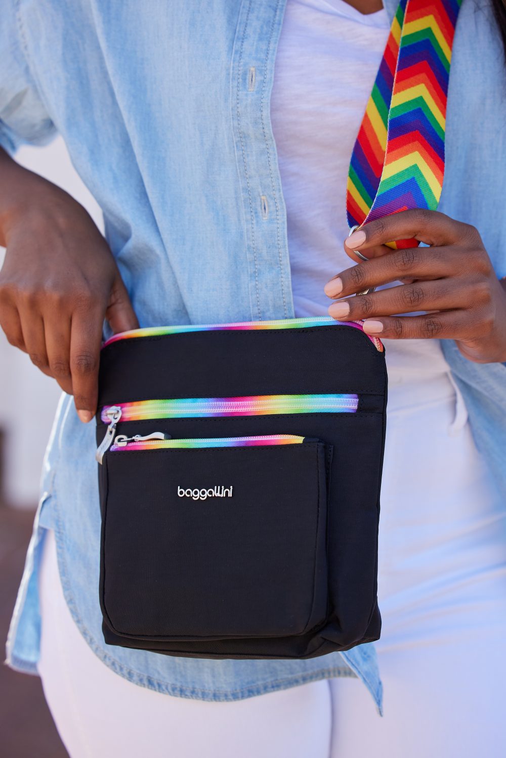 These fun cross-body bags are practical and FULL of pockets, complete with a fun little pop of rainbow for everyone to enjoy. Whichever style you choose, there’s plenty of room to put all your goodies inside. Grab the fun colorful strap and go, and know that the company donates proceeds from these special bags to GLAAD, so your money is in good hands.