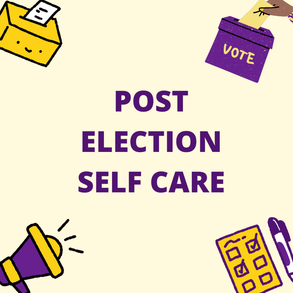 Why am I saying limit your time on news outlets while you’re on our website or app?!? Sounds a little bit crazy, doesn’t it? It can be important to read some of the news and latest updates about this election, but it can also be overwhelming and can increase your stress levels. Try your best to limit your time on media outlets. When you do look at them, make sure to check in with yourself. Try not to let it be the first thing you look at in the morning or the last thing you read before you go to bed.