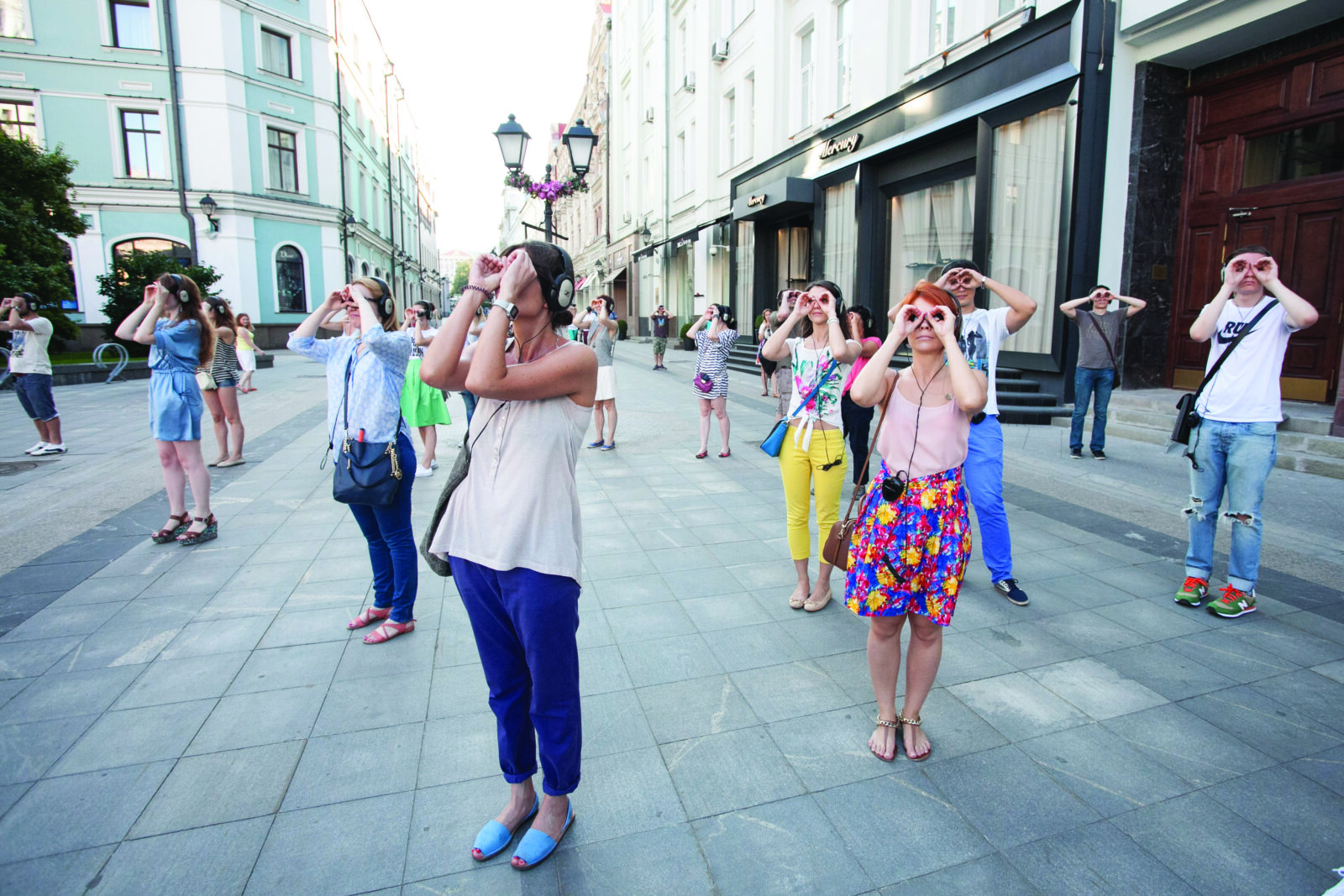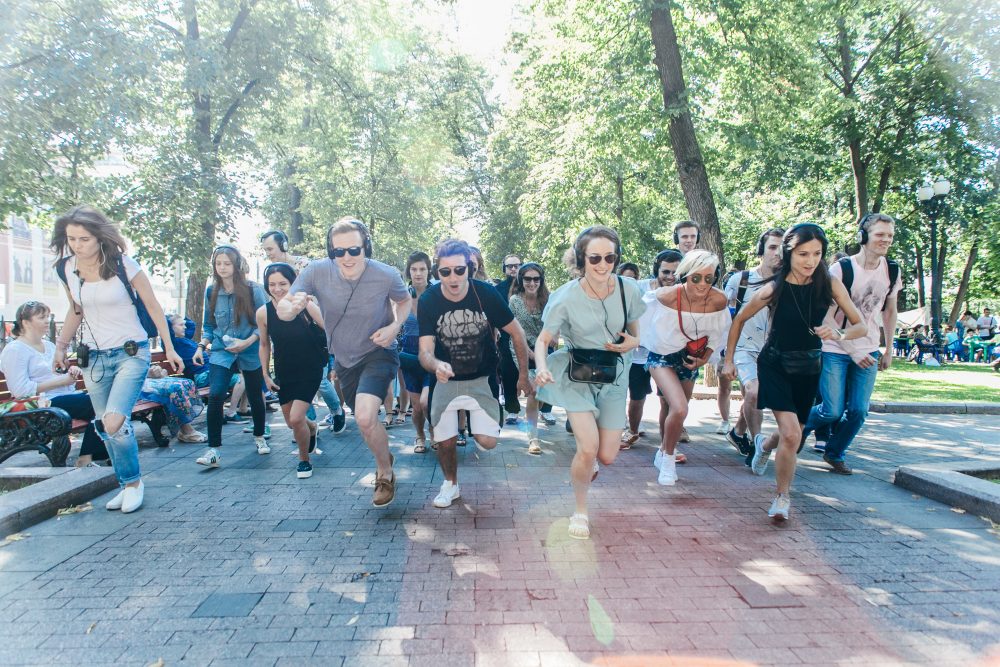 Participants are ushered via a guided audio tour through a secret city within the city, perusing areas of Denver that are typically unseen. Each member of the 60-plus person group observes art along with human behavior, and at times becomes the art and objects of observation.