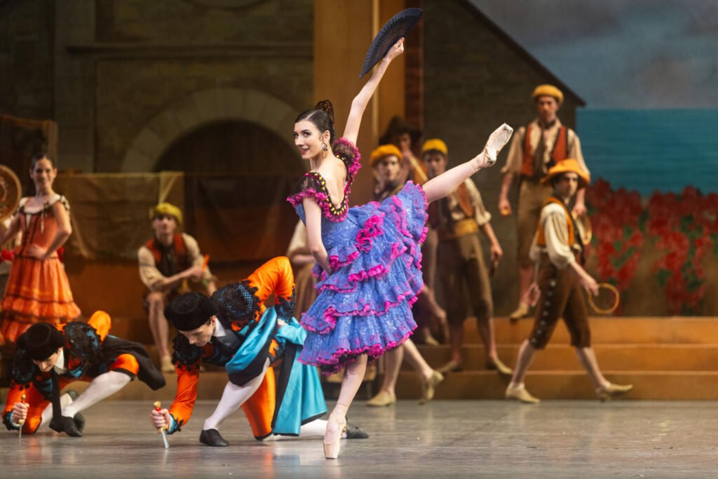 Act I, set in the town square in Barcelona, was a feast all by itself. The Spanish-inflected costumes, the fan work, the bustle of the square, the sharpness of the ensemble dancing, all of it reminded me how satisfying period detail can be when performed at this level. And I have to pause on the fan work because it is exactly the kind of thing that can look easy from far away and is anything but. To watch a stage full of dancers snap fans open and shut in perfect unison, while remaining fully inside the choreography, is one of those little professional miracles that rewards the ballet obsessive. It is technical. It is theatrical. It is delicious.