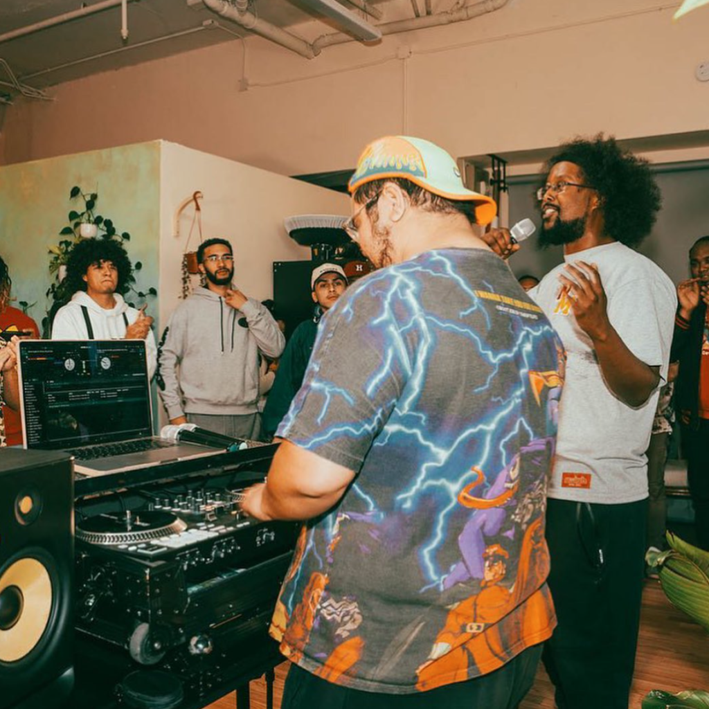 His sets are stitched together from OPM classics, diaspora deep cuts, and the kind of edits he finds through late-night rabbit holes and old Filipino DJ Facebook groups. If it is Filipino, it goes in the crate. The mission is intergenerational joy. Aunties two-step in the aisles. Kids climb onto the check stands for a better view. Cashiers dance at their registers. Employees break into choreo the second a certain hook drops. Confusion turns into celebration. What really keeps the room moving is JP’s instinct. He reads a crowd the way he reads an opponent in Street Fighter, adjusting in real time until everything locks in.