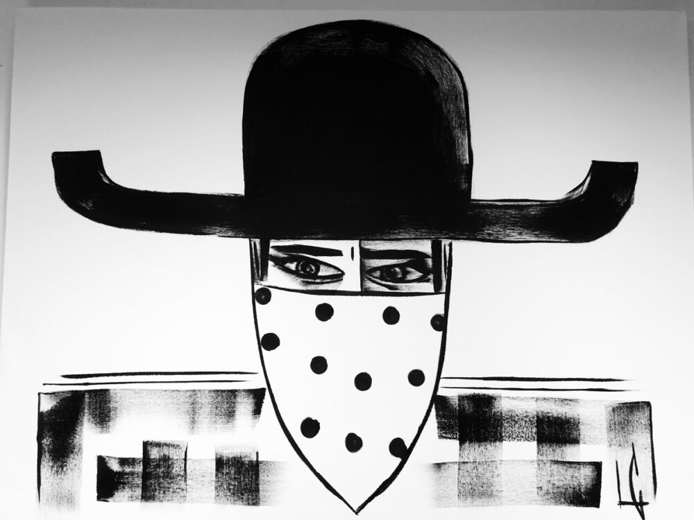 “The whole cowboy thing came about because of my grandfather, who was really influential in my life,” Goodson says. “When I was really little, he taught me how to draw a cowboy hat and nothing else. And so, for whatever reason, it stuck with me whenever I had the chance to be creative. It was like the one thing I knew how to do. And so I started there, and I think a lot of the characters are just reflections of people that have been in my life at some point, maybe not this life; it may have been a past life.”