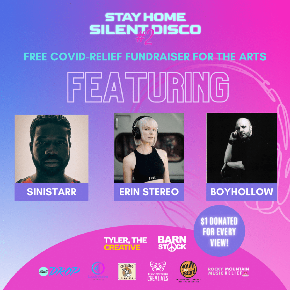 With restrictions still tight in Colorado and COVID-19 cases back on the rise, it seems that concerts and clubbing won’t happen anytime soon. But, that doesn’t mean you can’t dance the night away in the comfort of your own home while helping raise money for local organizations with a virtual silent disco. Join Tyler, the Creative tonight for the Silent Disco #2.