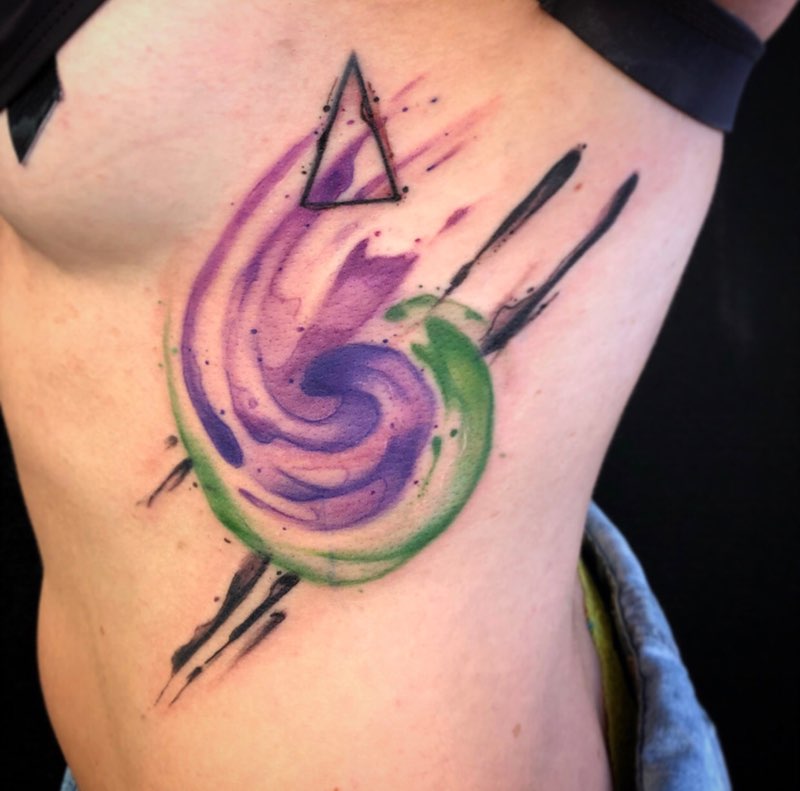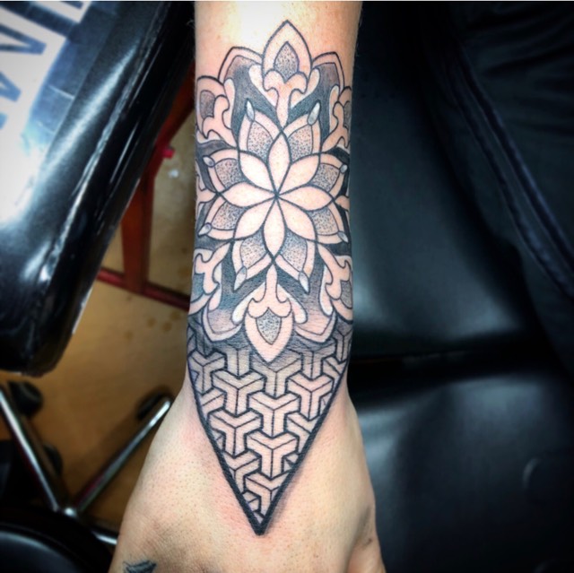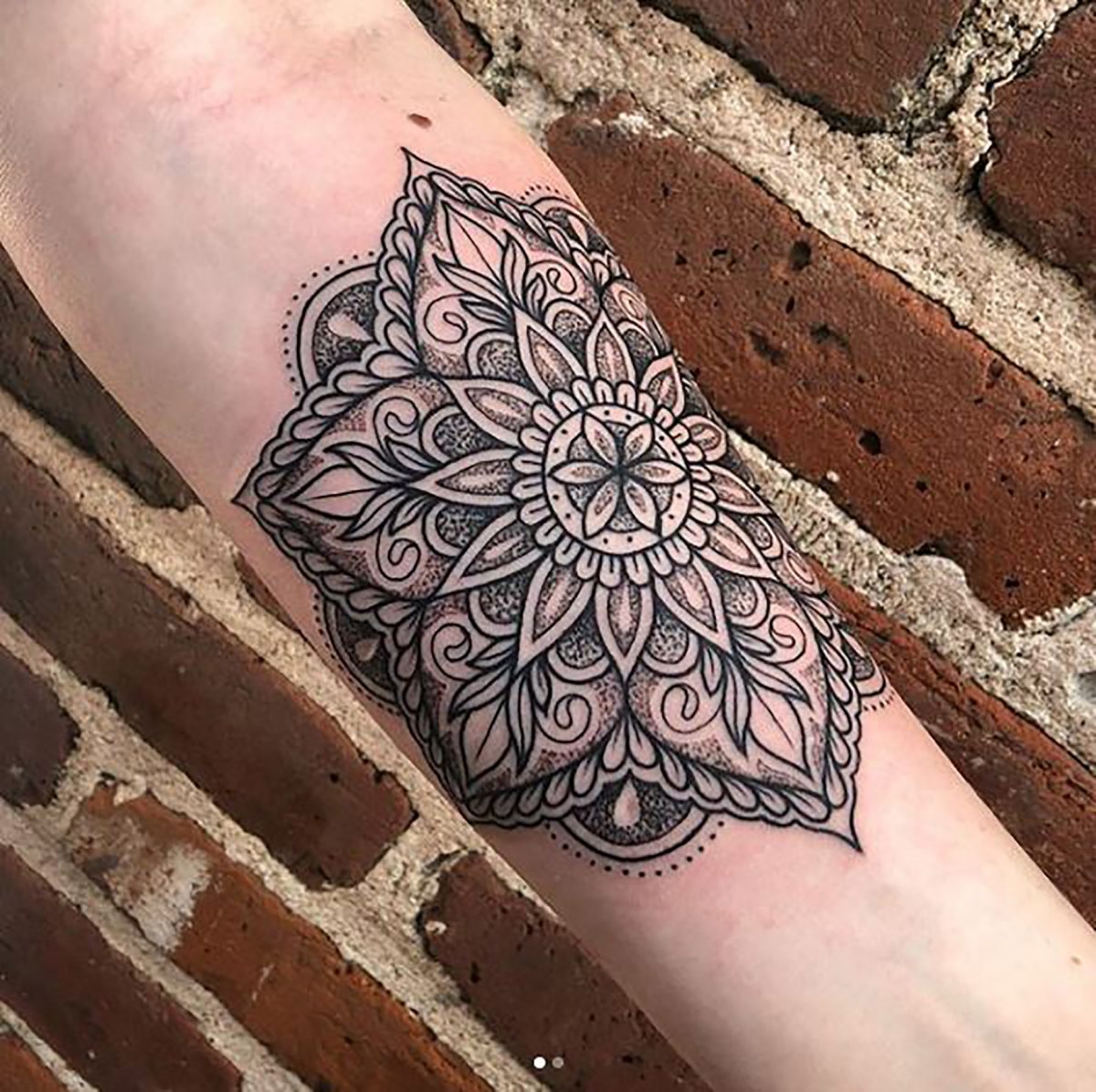 “That gets into my spiritual philosophy about tattooing,” she explained. “The physical and emotional transformation, being able to perform some kind of internal alchemy or transmutation, ideally you’re getting something that you like, seeing yourself in a more positive light. That’s why I’m always so grateful to my clients; because they feel safe enough and trust me enough to create something that significant along their journey and be a part of their journey. You’re permanently marking somebody, so it’s a big deal.”