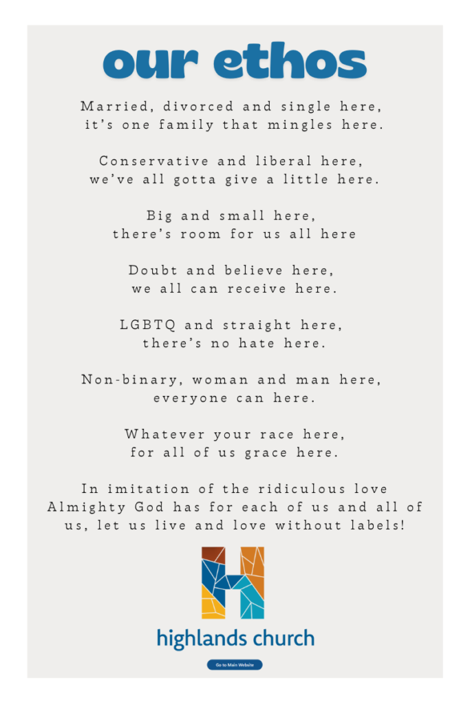 And this is where I find resonance with the ethos of Highlands Church Denver, a community that says plainly: “We are a place of acceptance and love for all people, without condition.” That ethos doesn’t erase the harm done elsewhere, and it doesn’t pretend the church has always lived up to its own teachings. But it does reflect the kind of love I see in Scripture—the kind that heals instead of wounds, welcomes instead of judges, and insists that every person is worthy of care.