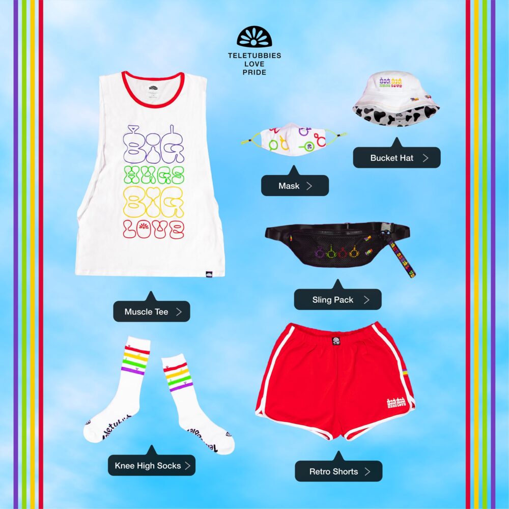 Teletubby stans can purchase the wacky Teletubbies Pride Collection statement pieces at teletubbiespride.com or on Twitter @TeletubbiesHQ