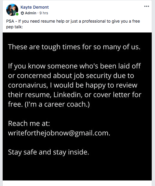 If you are looking for remote work, one member provided a link to spreadsheet which lists more than 1,500 jobs who are currently looking to hire. If you need help updating your resume in order to apply for those remote jobs, another group member has got you covered.