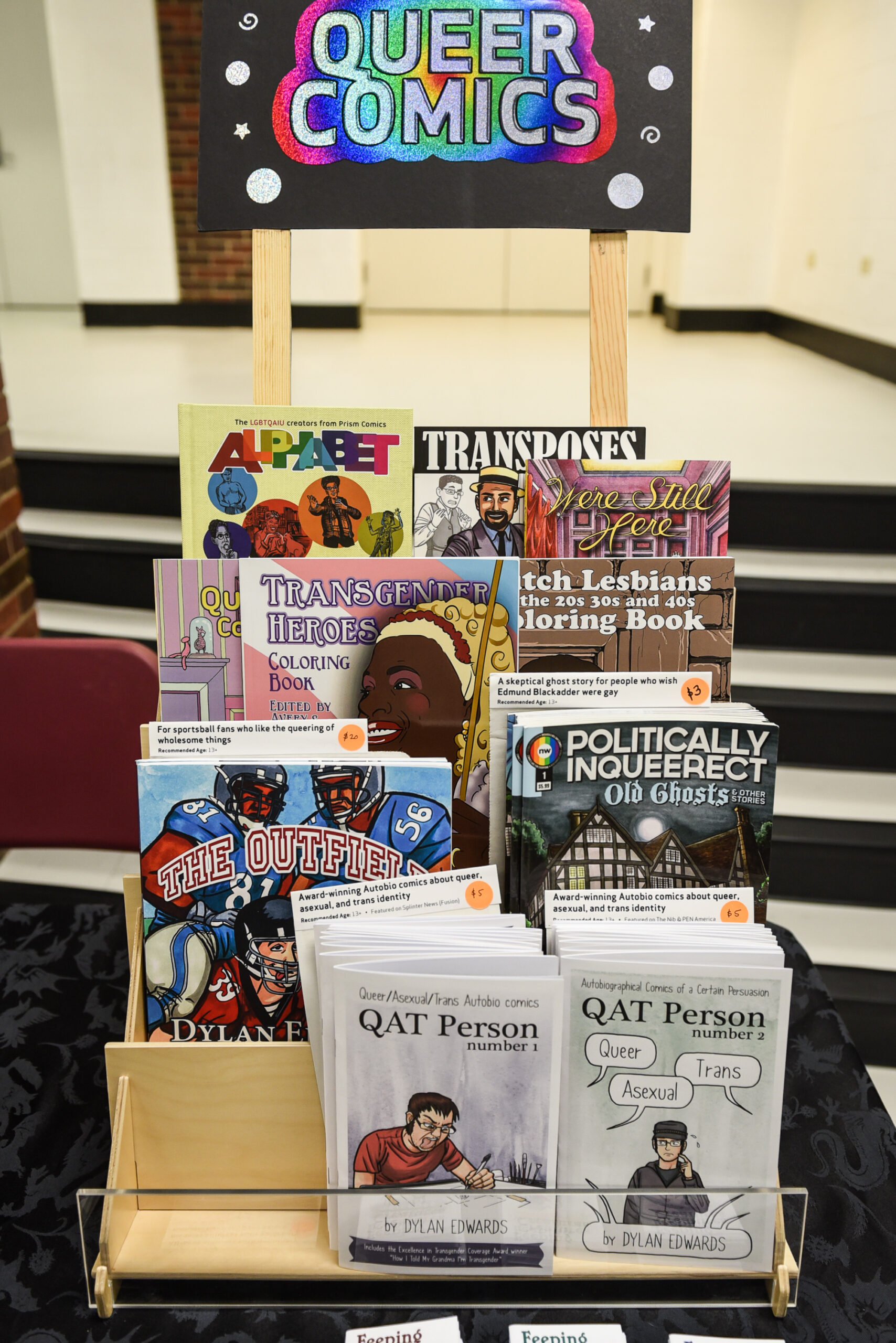 The hallway of the high school that chilled evening filled with the buzz of clamoring conversation and chatter of connection. Organizations, GSAs, and artists tabled important information and resources as folks shook hands and exchanged phone numbers. This was a space not only where information was bountiful, it was a place where important and necessary ideas and information was being shared.