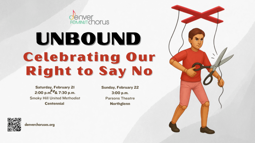 The Denver Feminist Chorus (DFC) is delivering a musical breakup letter designed to free audiences from the pressure to stay quiet, stay small, or stay stuck with anything that doesn’t serve them. Forget the saccharine Valentine’s script—This concert is about choosing the kind of love that expands your life, not the kind that drains it. “No” isn’t a failure here; it’s a power move. And sometimes that one small no is what blows the door open to the freedom you didn’t know you were missing.