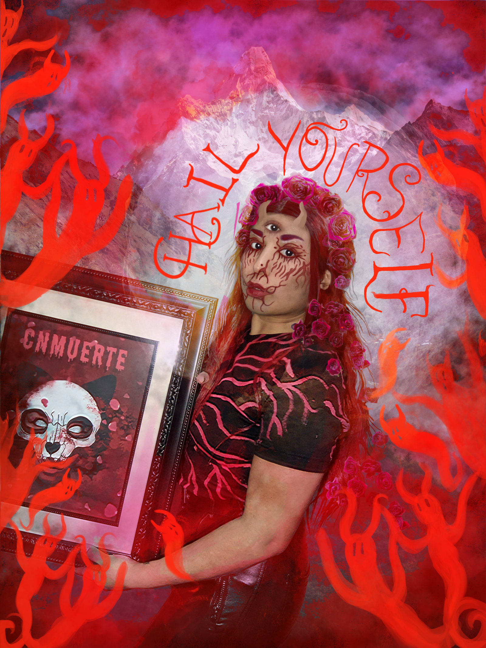 This is the first time in their life that Muerte has been able to be honest with themself and others about their identity. When asked how they think these conversations will fit into their art and expression, Muerte answers, “I’m still trying to figure that out as well.” Though, they note they’ve always been weird, recalling some of the backlash to their art over the years, and it’s been a relief to be able to contextualize some of their own expression through these new discoveries.