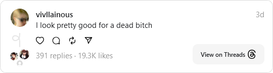 “I look pretty good for a dead bitch,” was an iconic start to the breaking down of Musk’s lies. She rebutted against his claims about her childhood on Threads. Firing back at him, she states, “Like, literally none of this ever happened,” in response to Musk’s remark about her love of musicals and “fabulous jackets” at the age of four. She goes on to say that she did not know the word fabulous, nor what a musical was because she was literally a toddler. It seems Musk apparently picked through gay stereotypes at random, chose two, and decided to roll with them.
