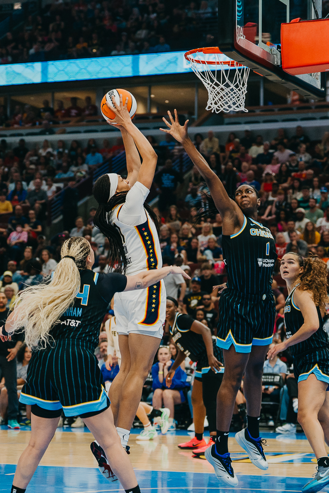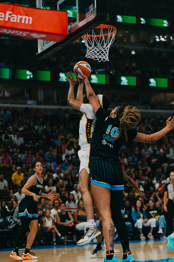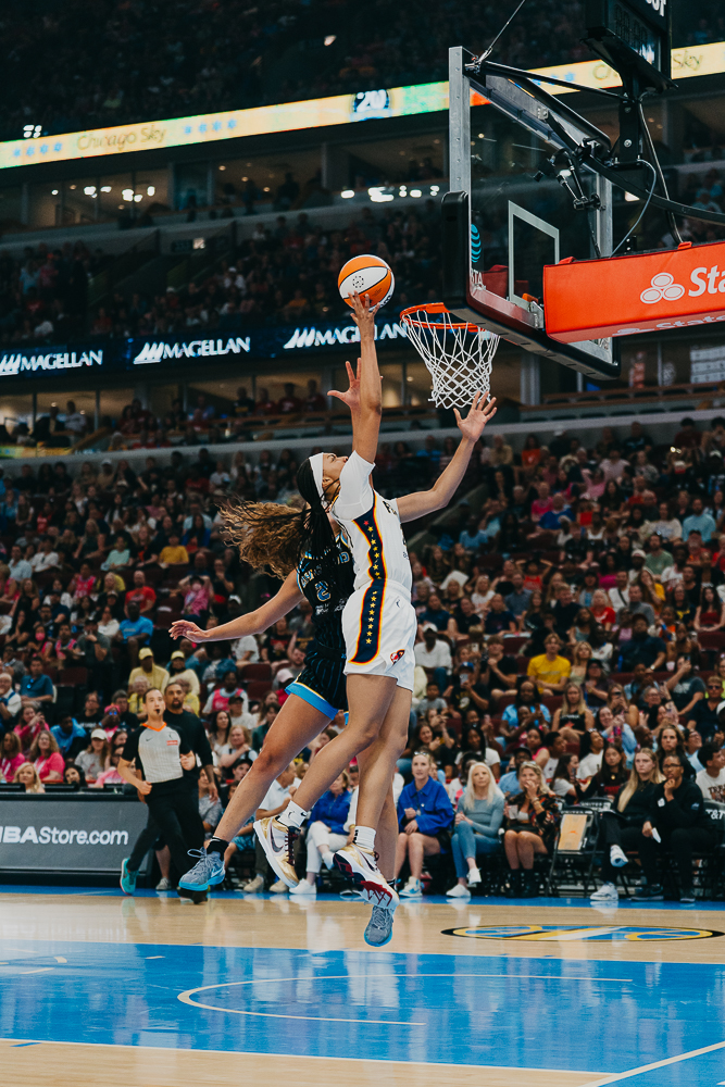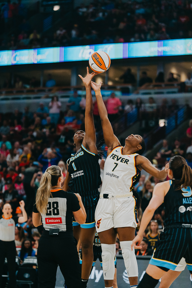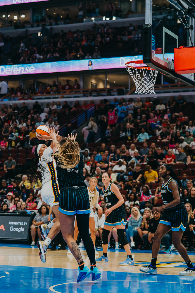 The Chicago Sky hosted the Indiana Fever at the United Center on July 27. OFM had the opportunity to photograph this rivalry’s match up in Chicago. The game drew a franchise-record crowd of 19,601 fans and it was the second-ever WNBA game at the United Center.