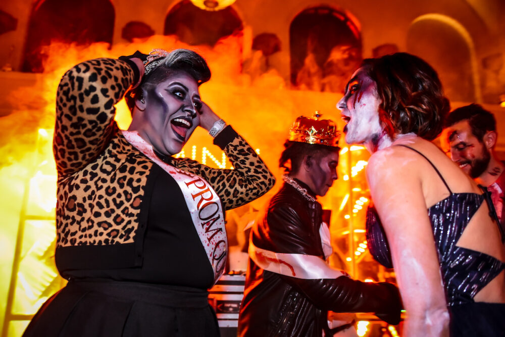 The 21+ event merged Zombieland with Romy and Michelle’s High School Reunion, and added an extra flirtatious Heathers aesthetic to the Zombie Prom. It was a deadly combination of throwback and ultimate queer realness.